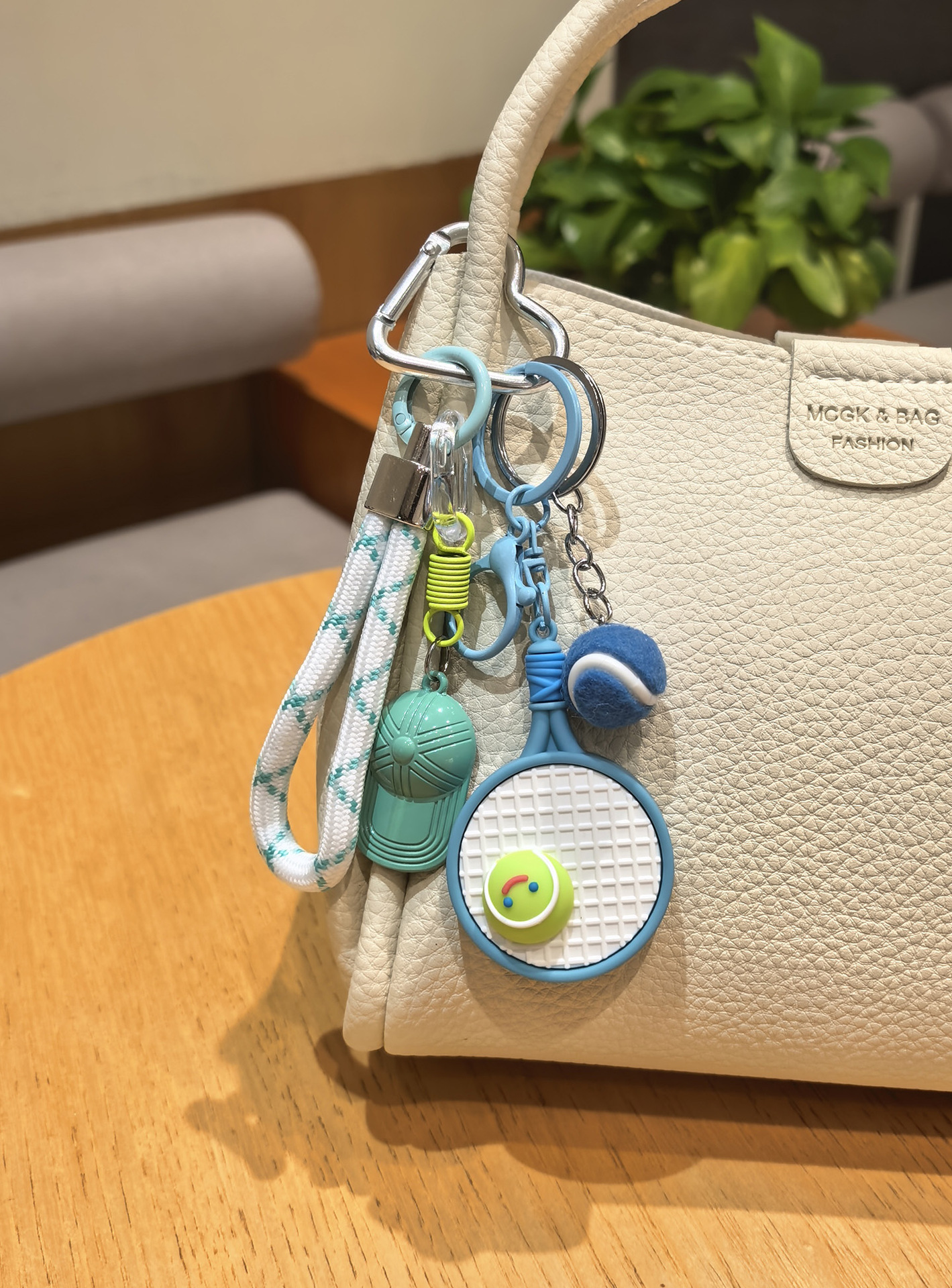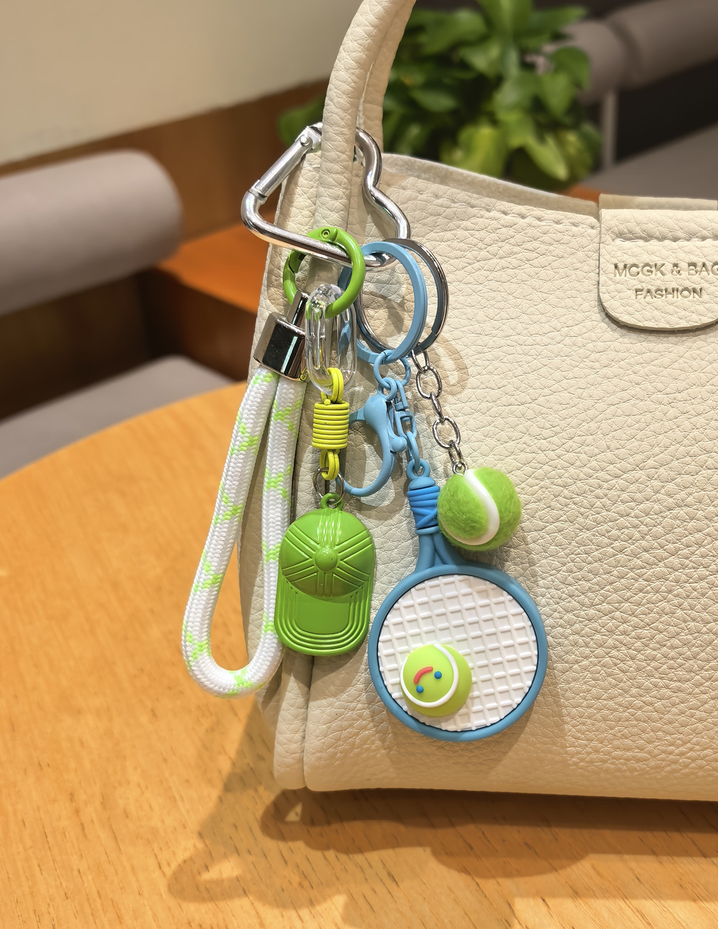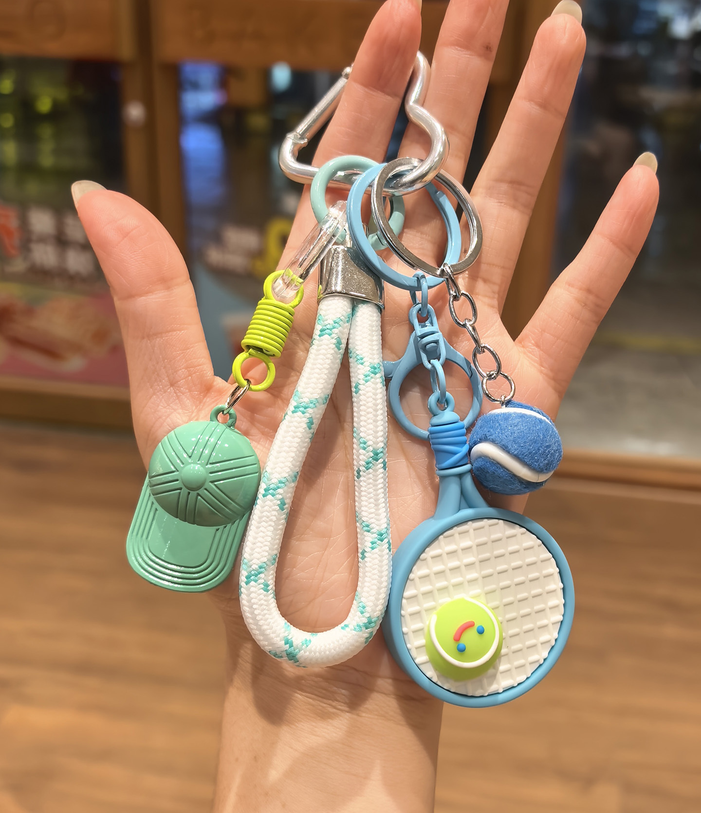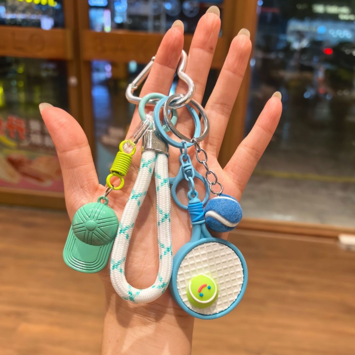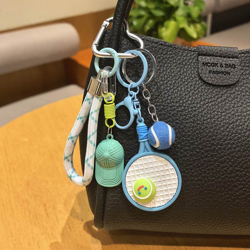 blue racket + green tennis + green hat [sports style tennis rackets keychain pendant