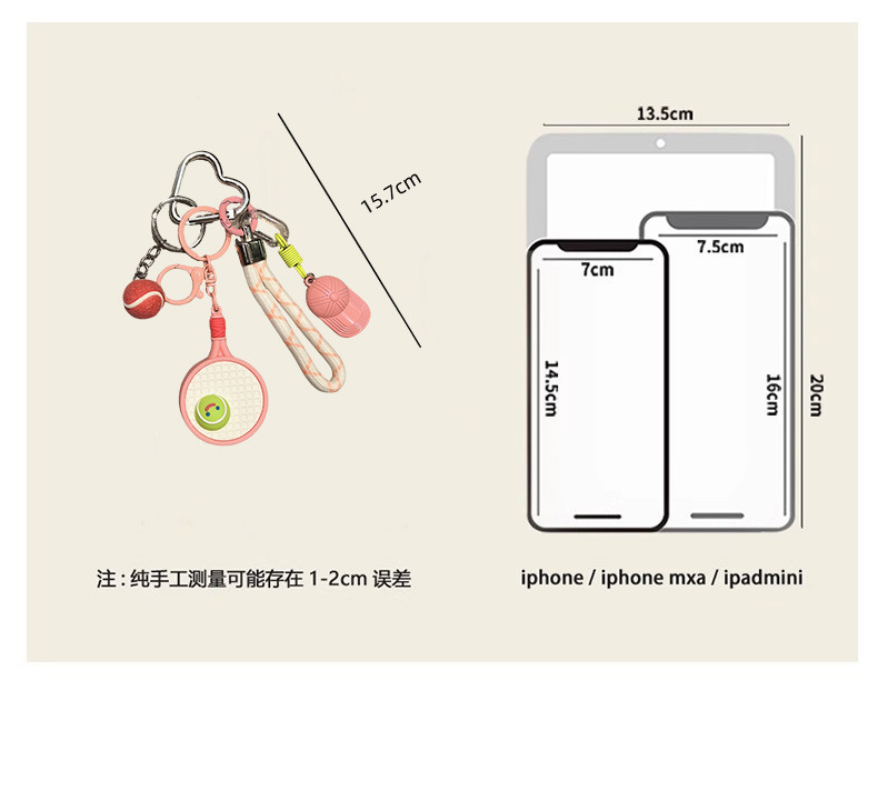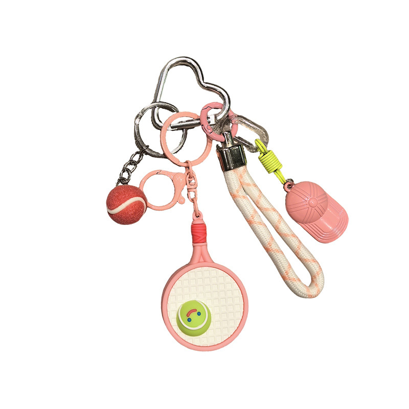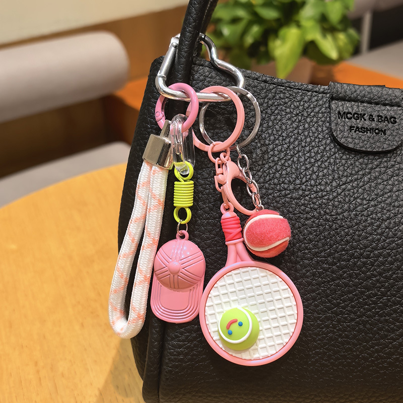 [pink] sports style tennis rackets keychain pendant