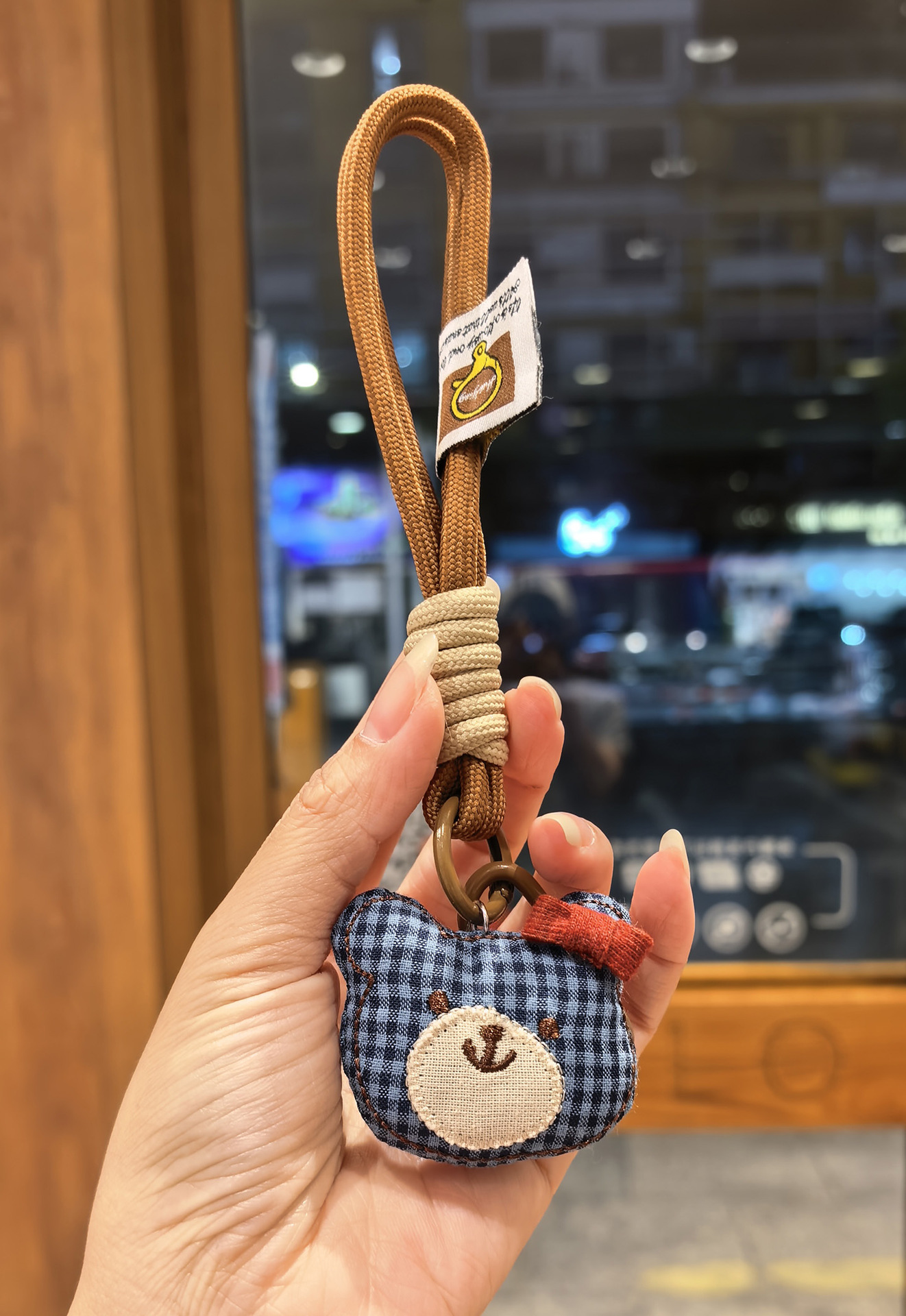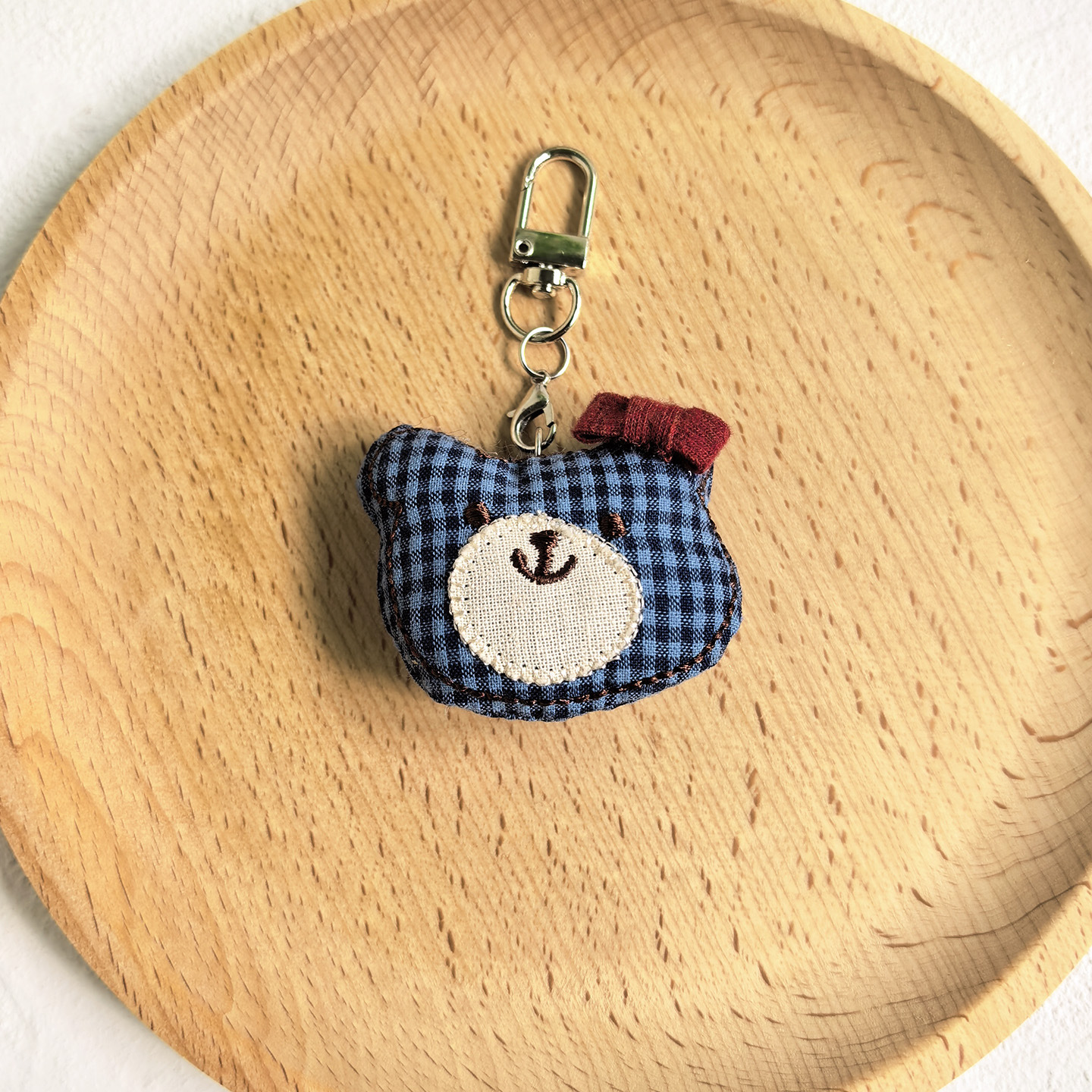 [door latch + lobster buckle] blue plaid bear head