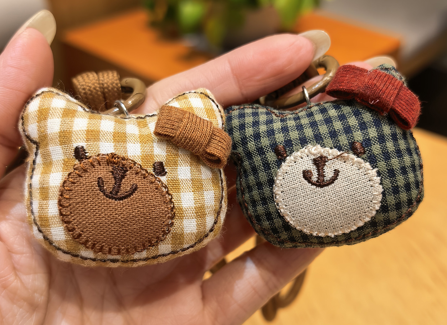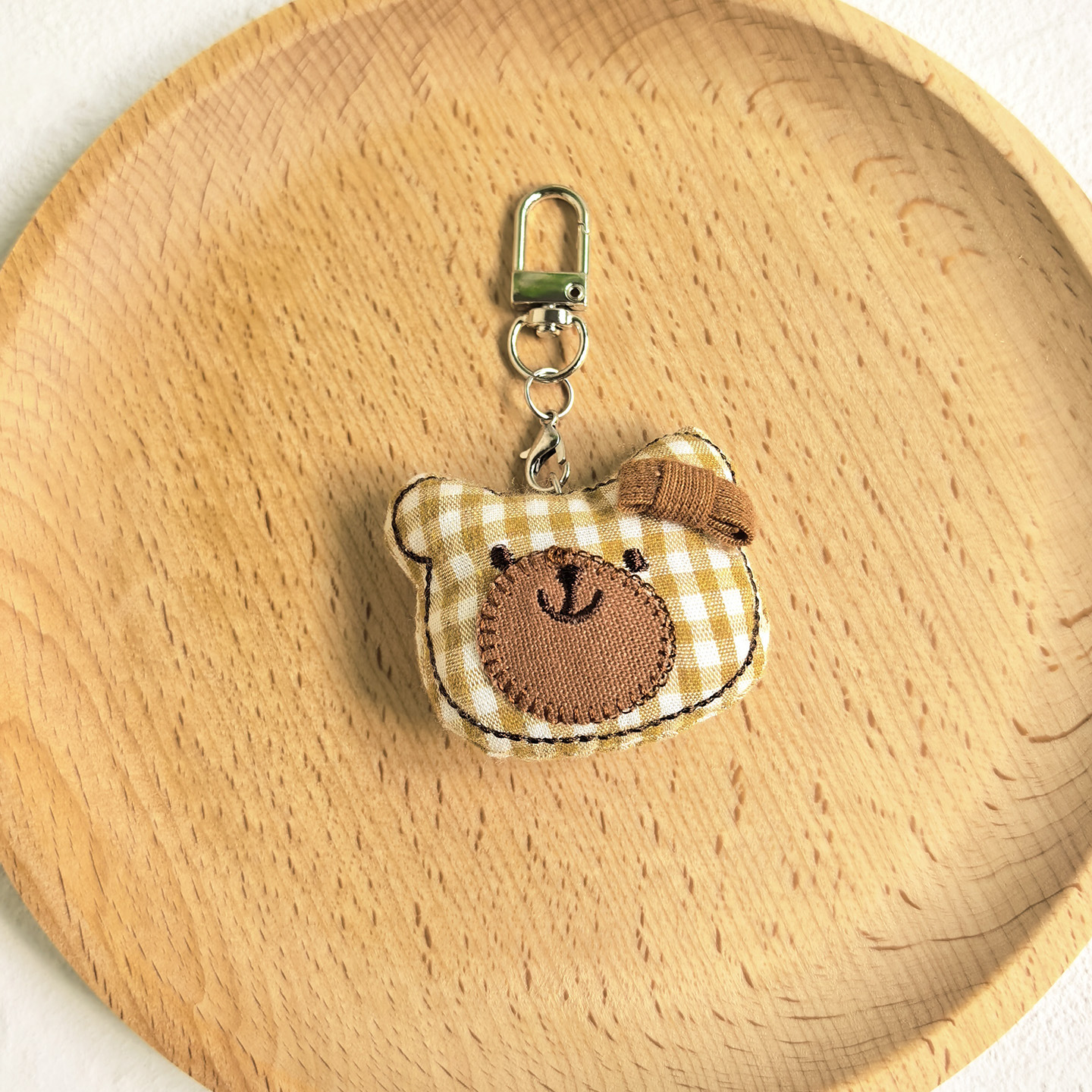 [door latch + lobster buckle] yellow plaid bear head