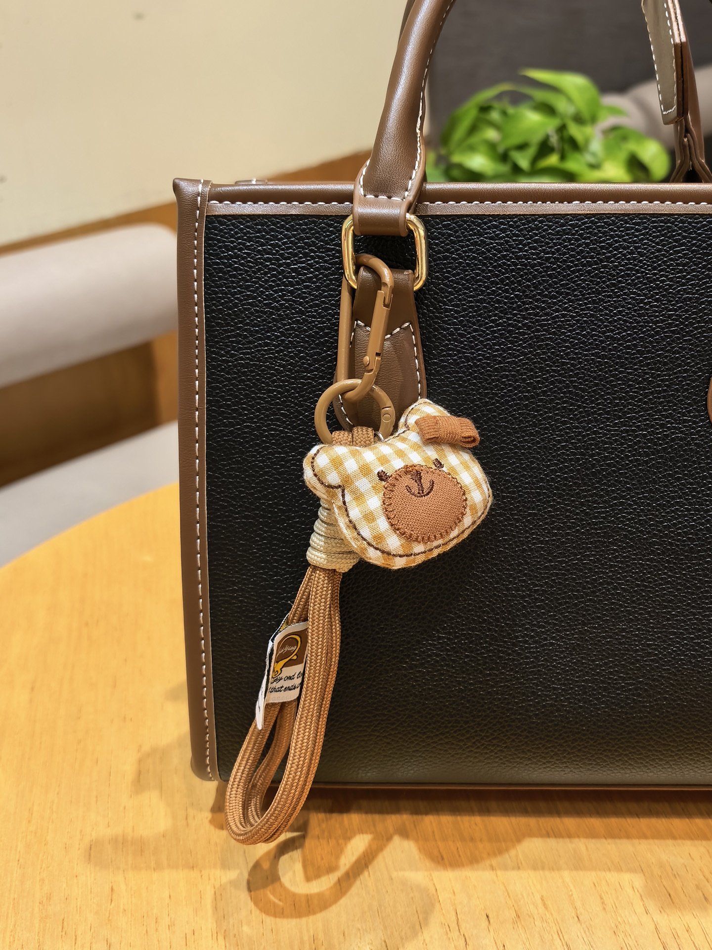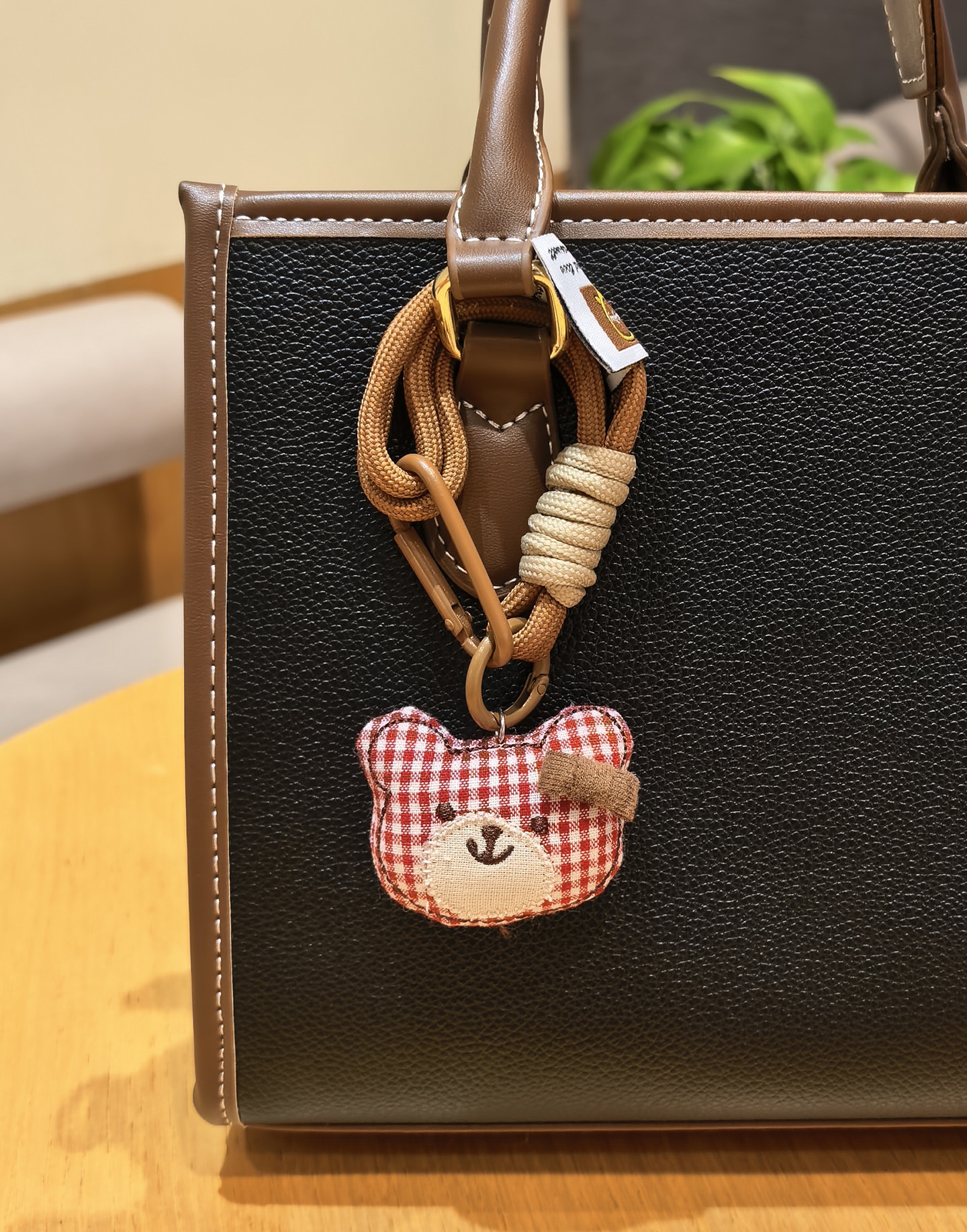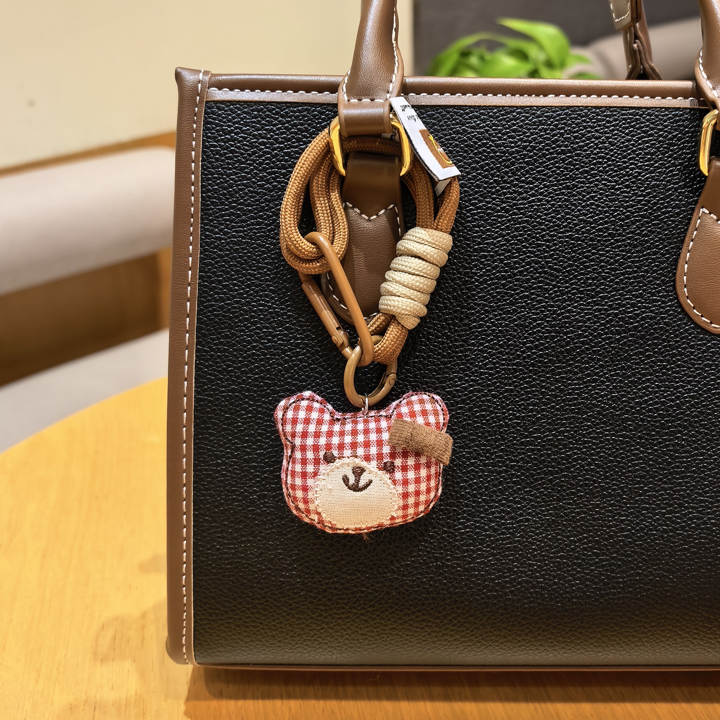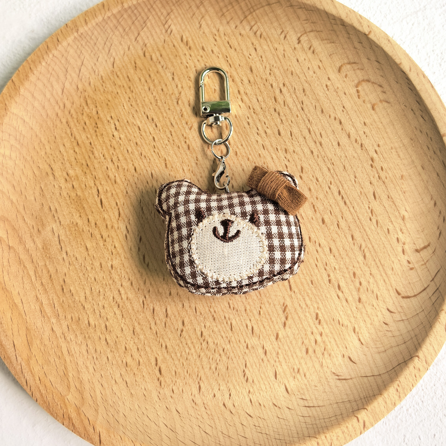 [door latch + lobster buckle] coffee color plaid bear head