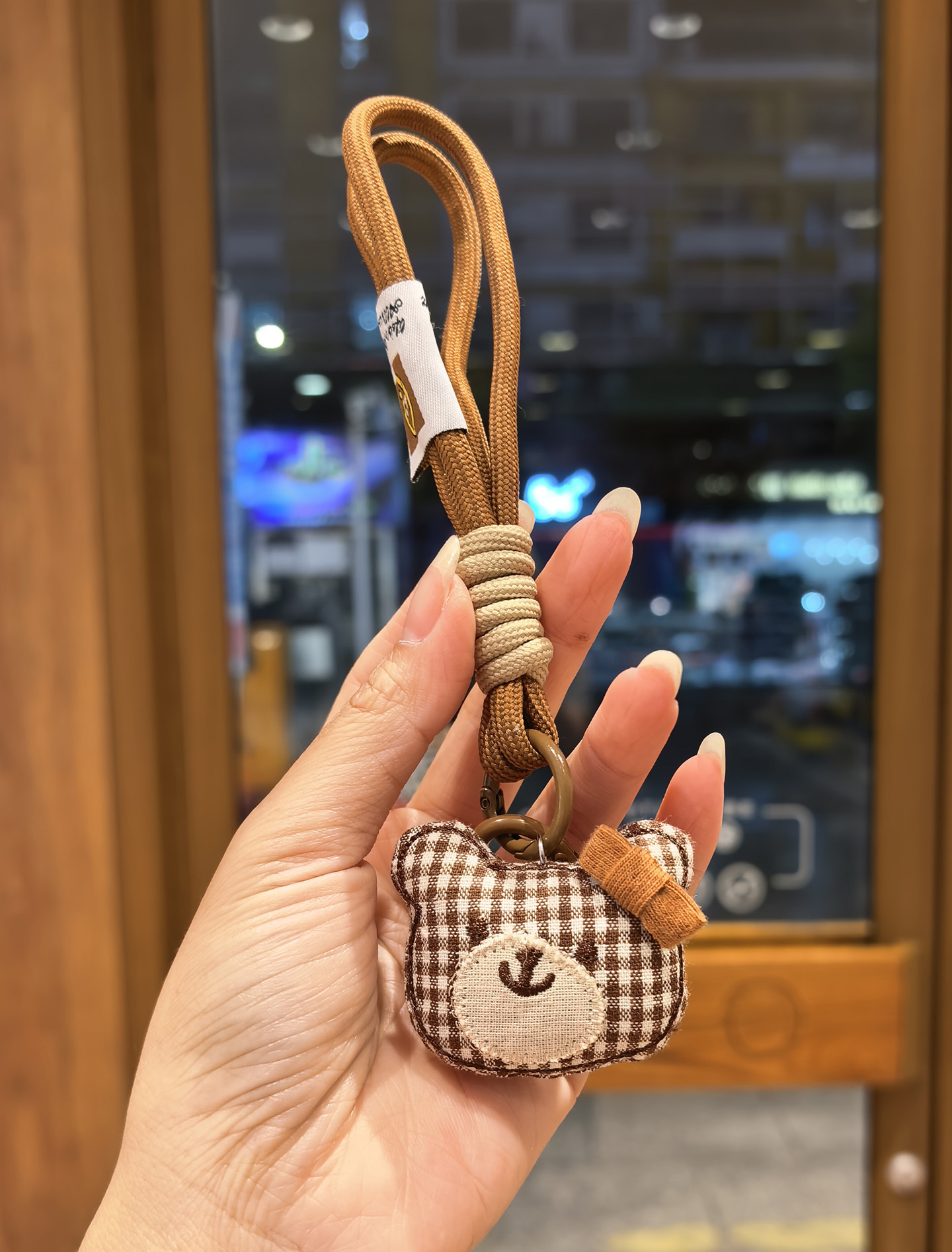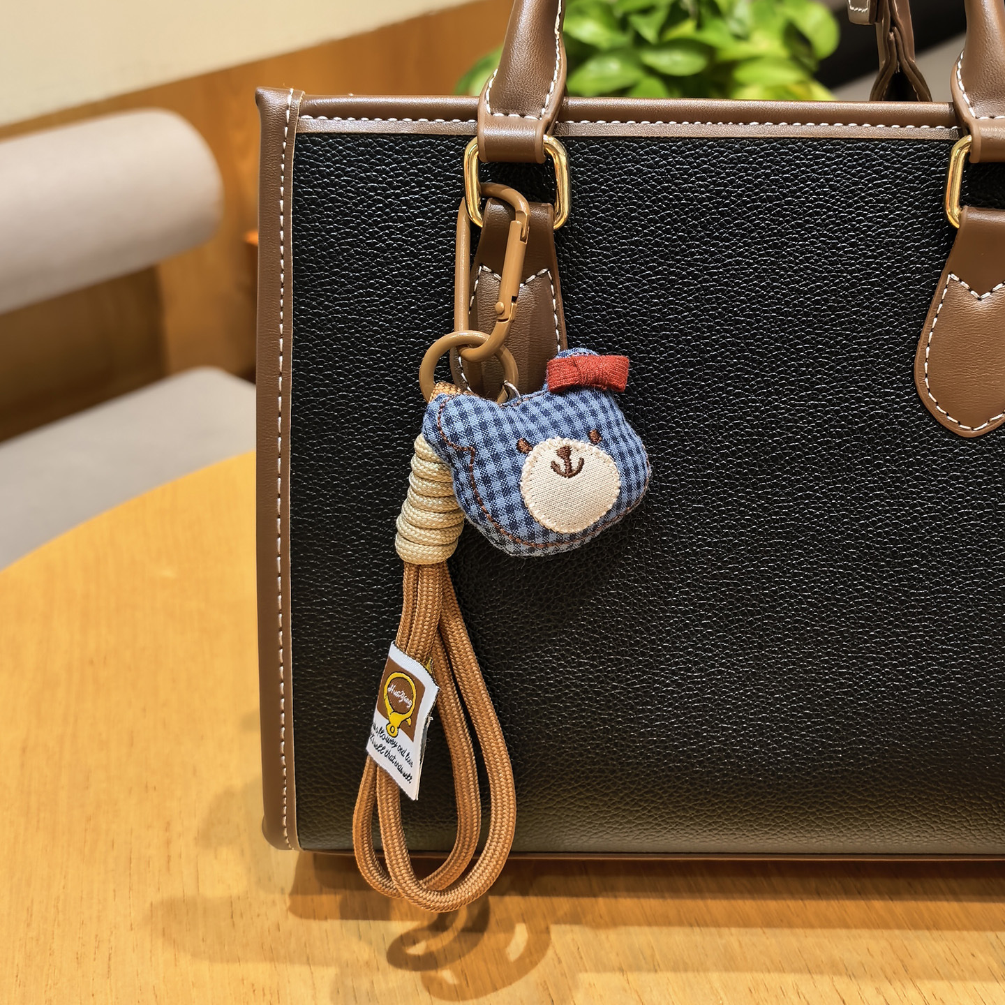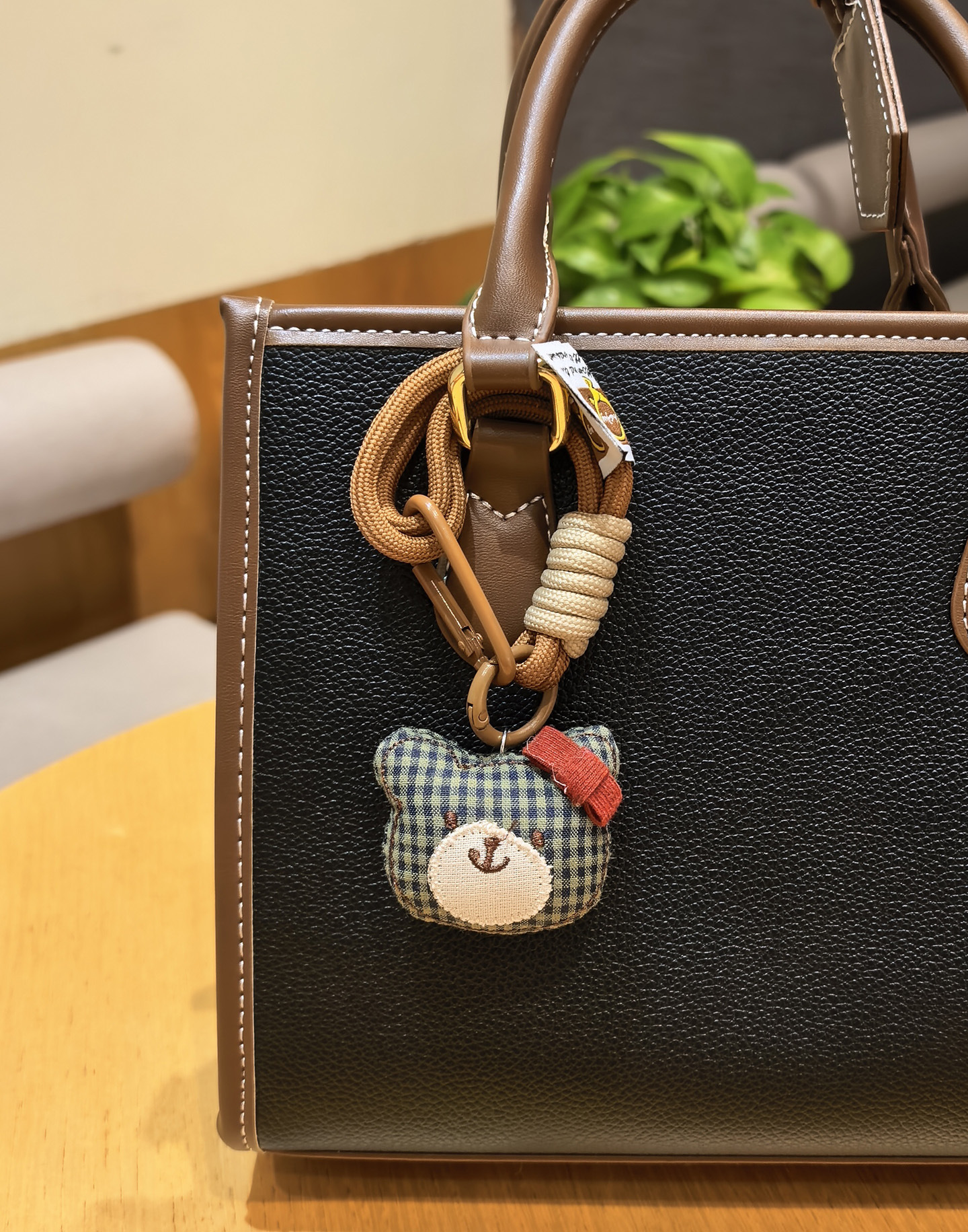 [door latch + lobster buckle] coffee color plaid bear head