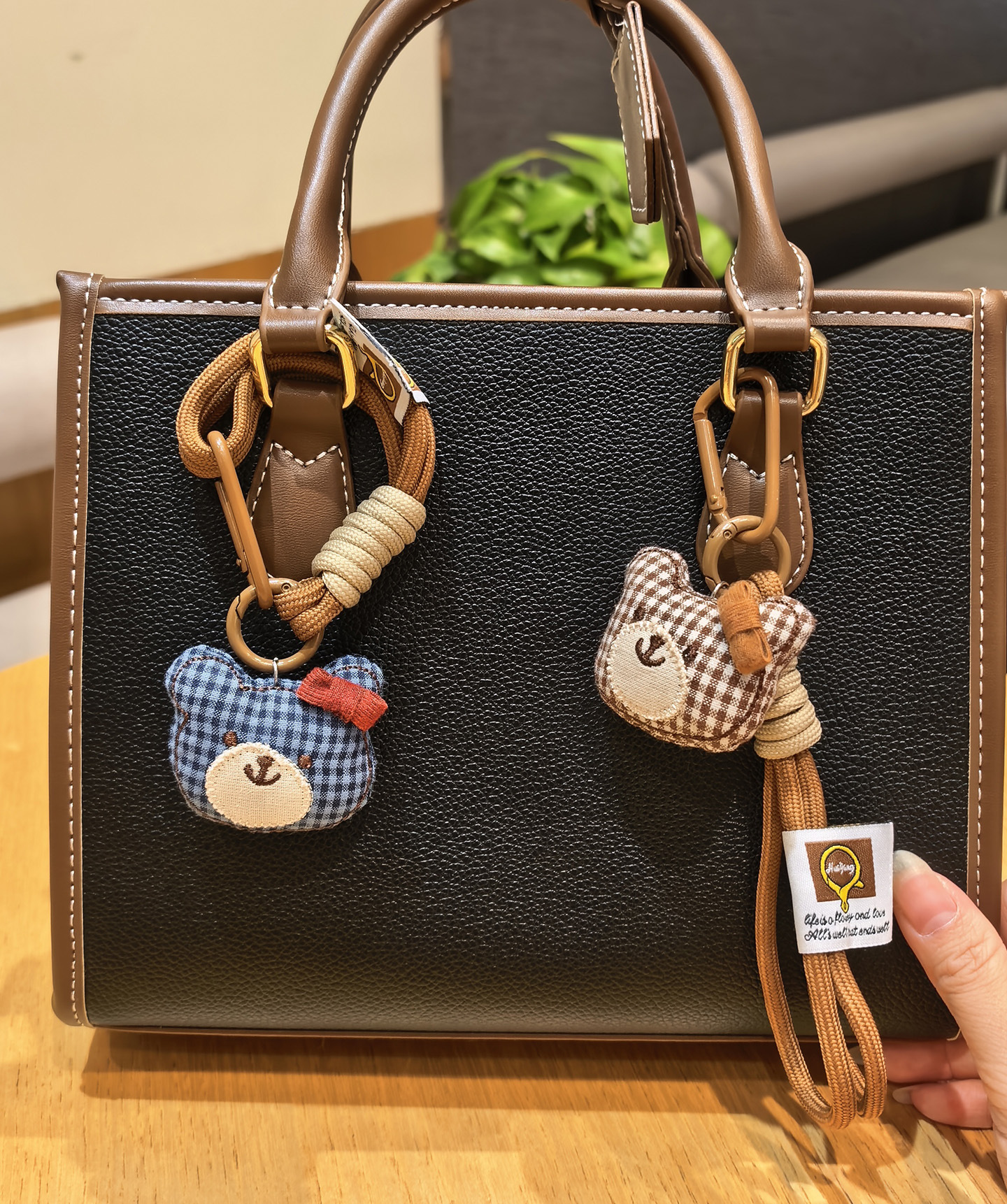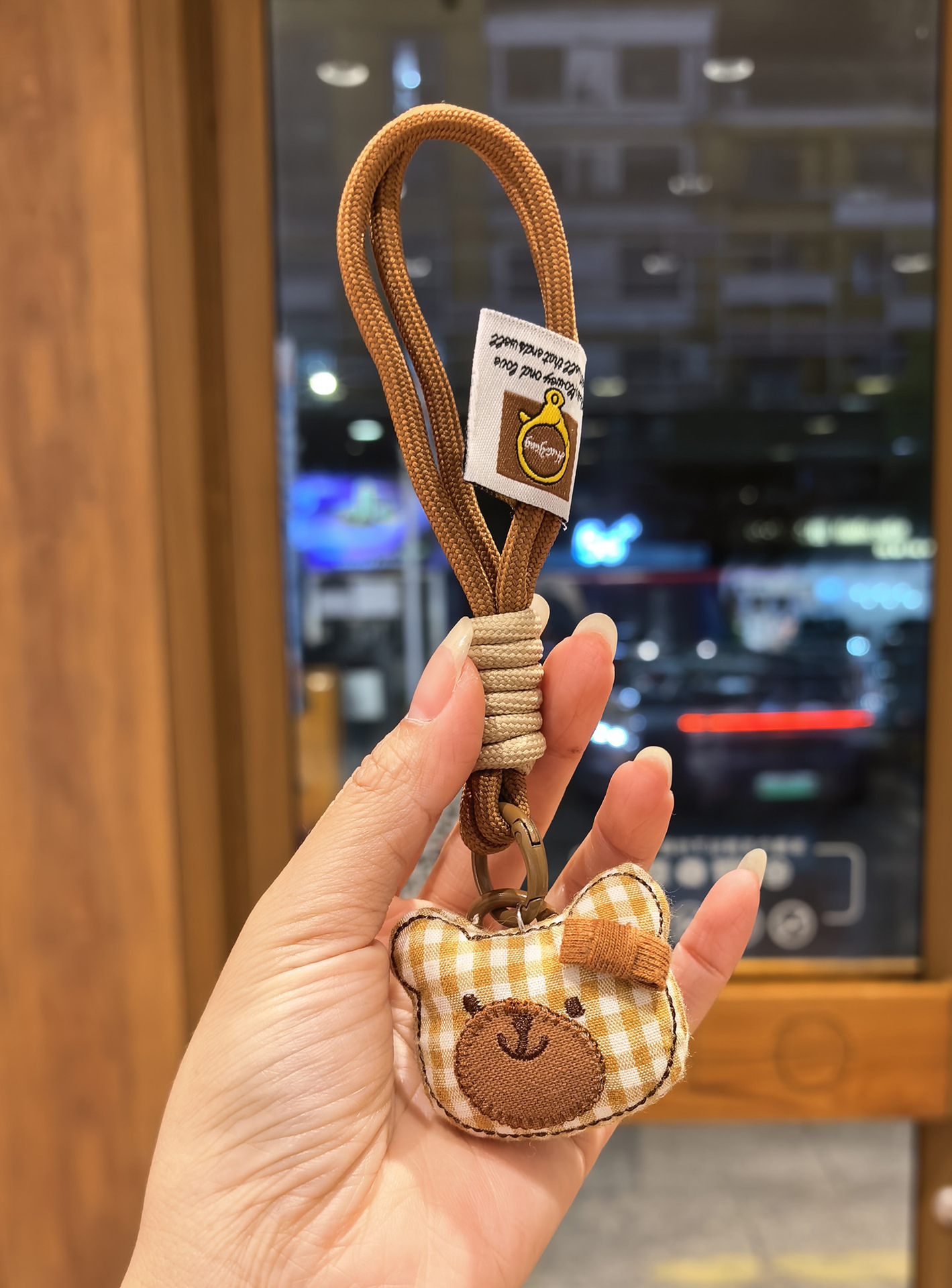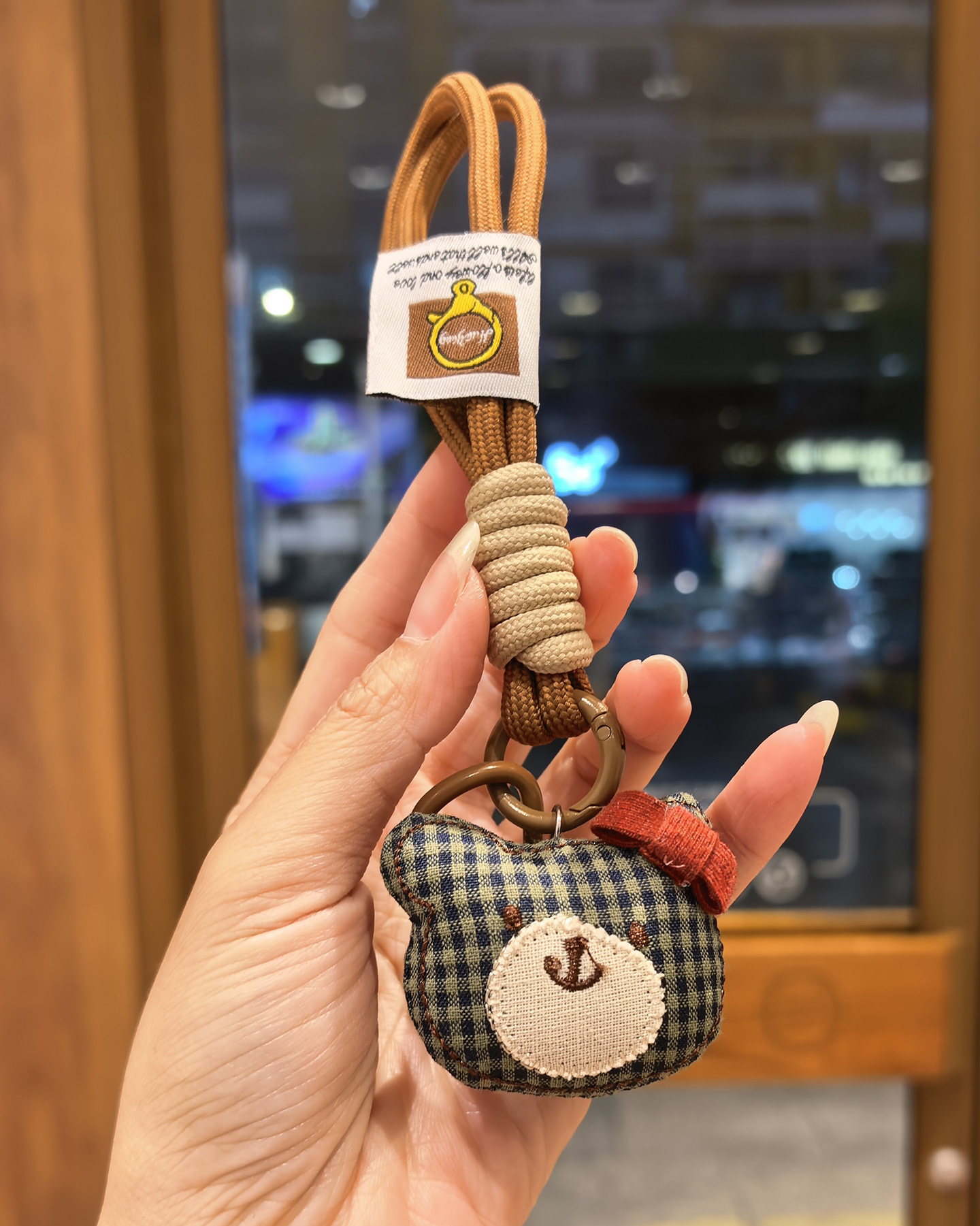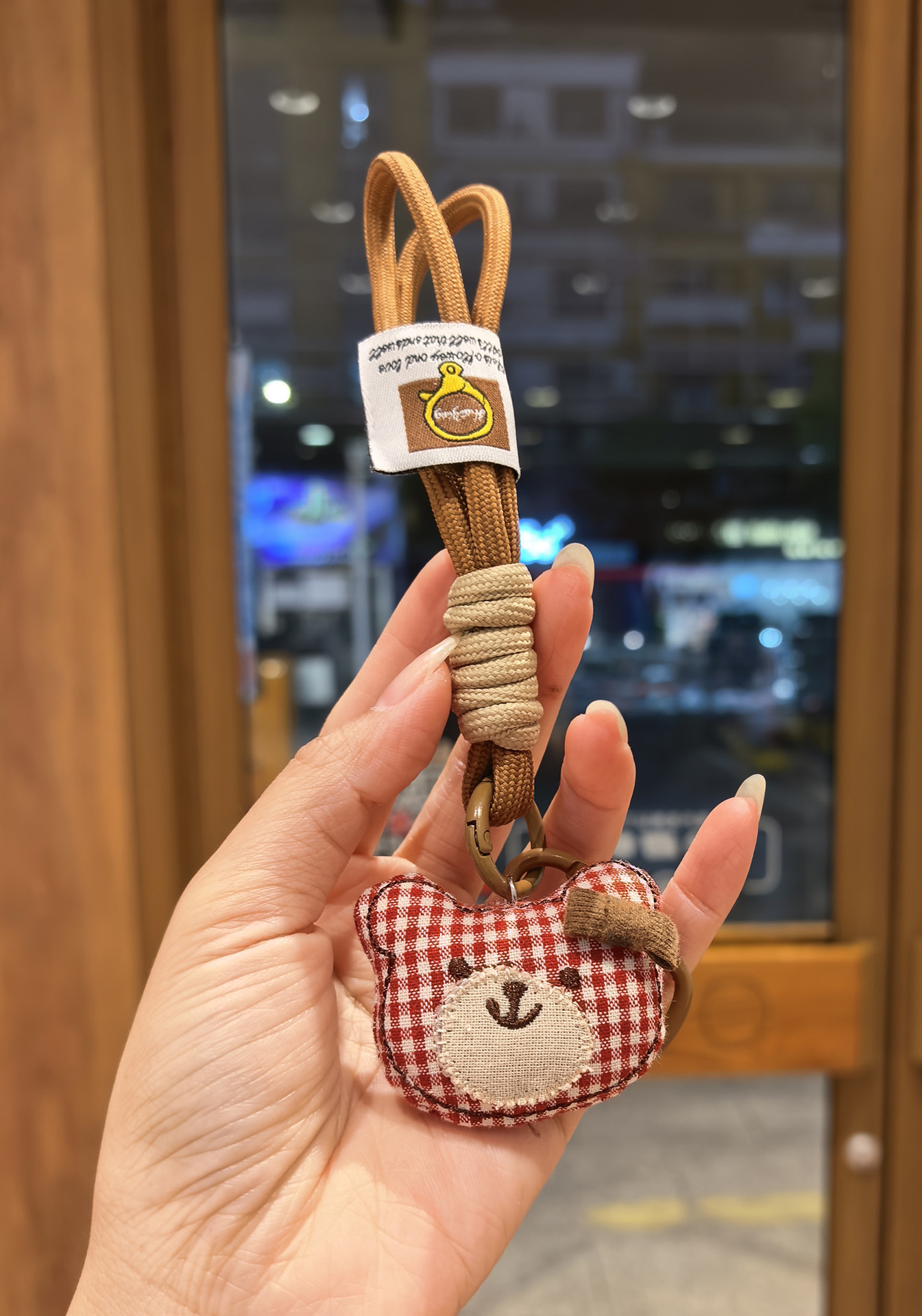[door latch + lobster buckle] coffee color plaid bear head