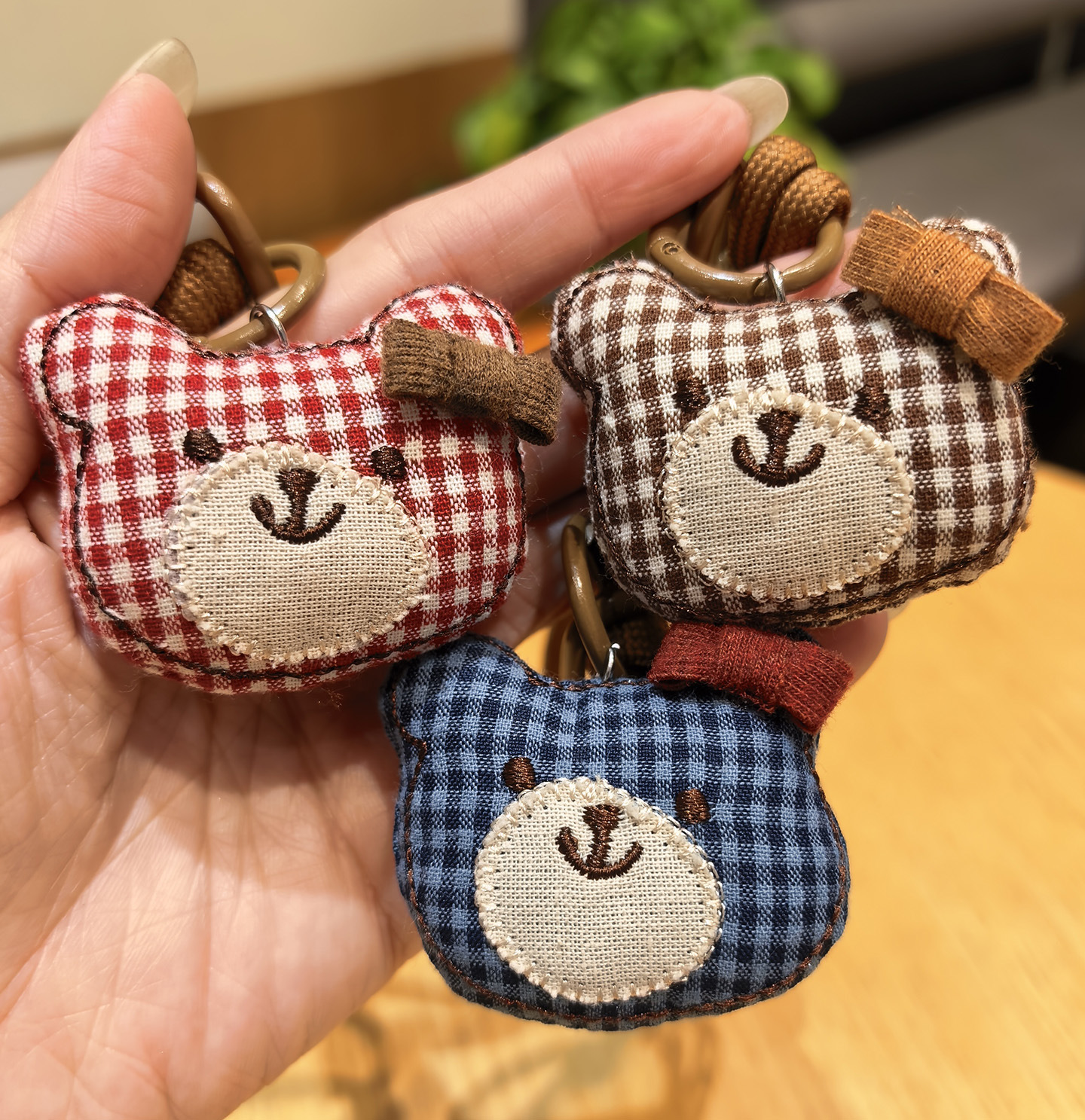 red plaid bear head [nylon rope double buttons style]]