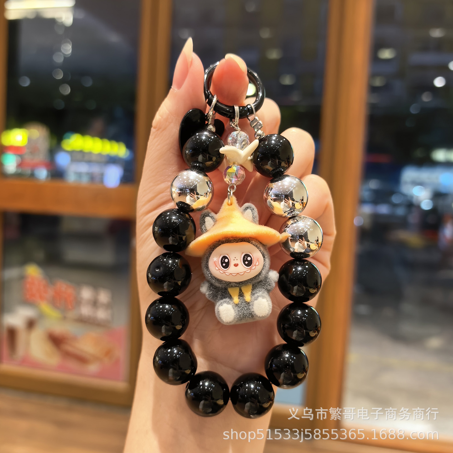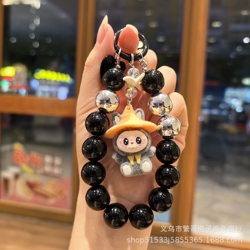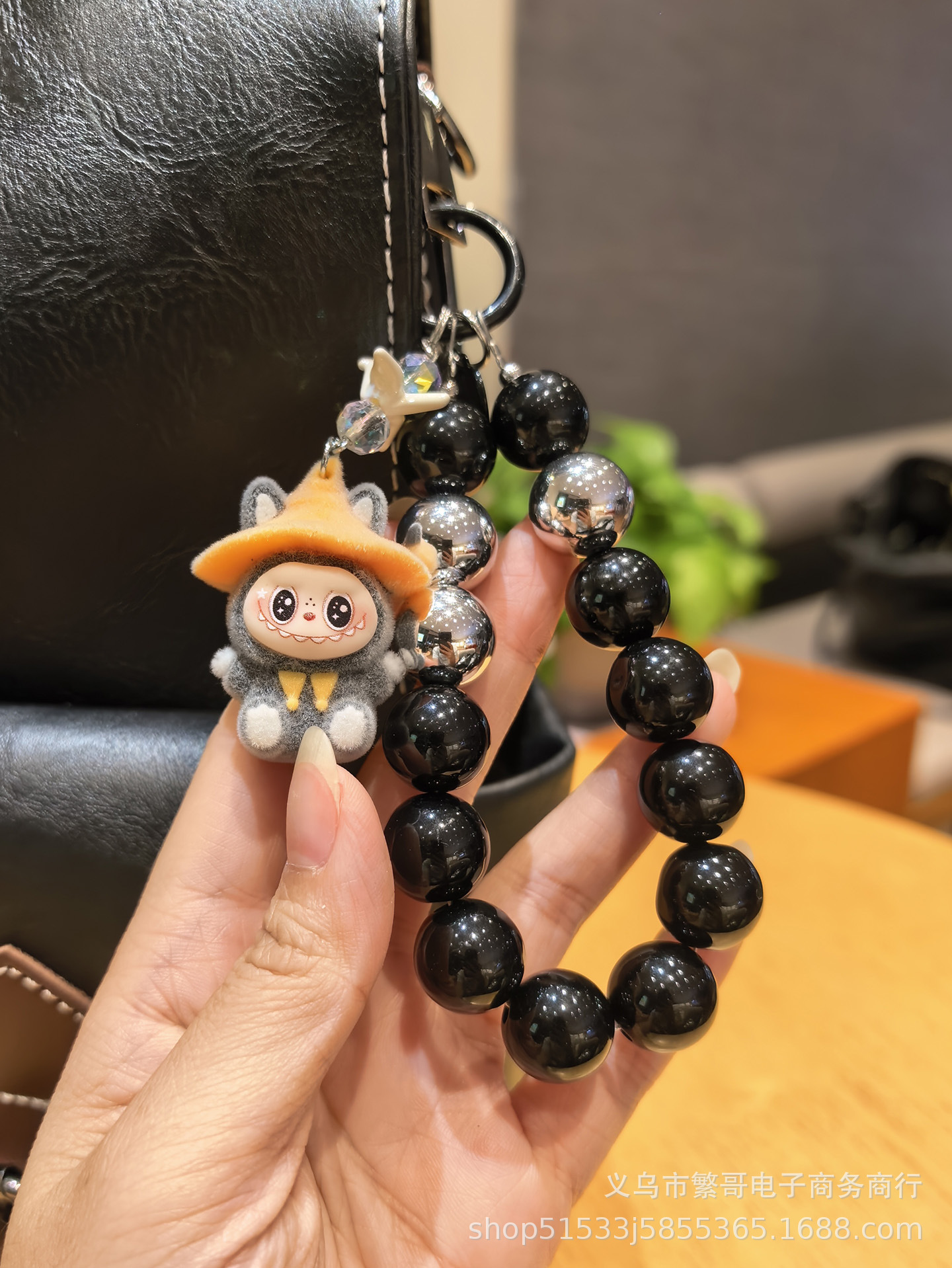 black string beads chain + wizard cloth gray