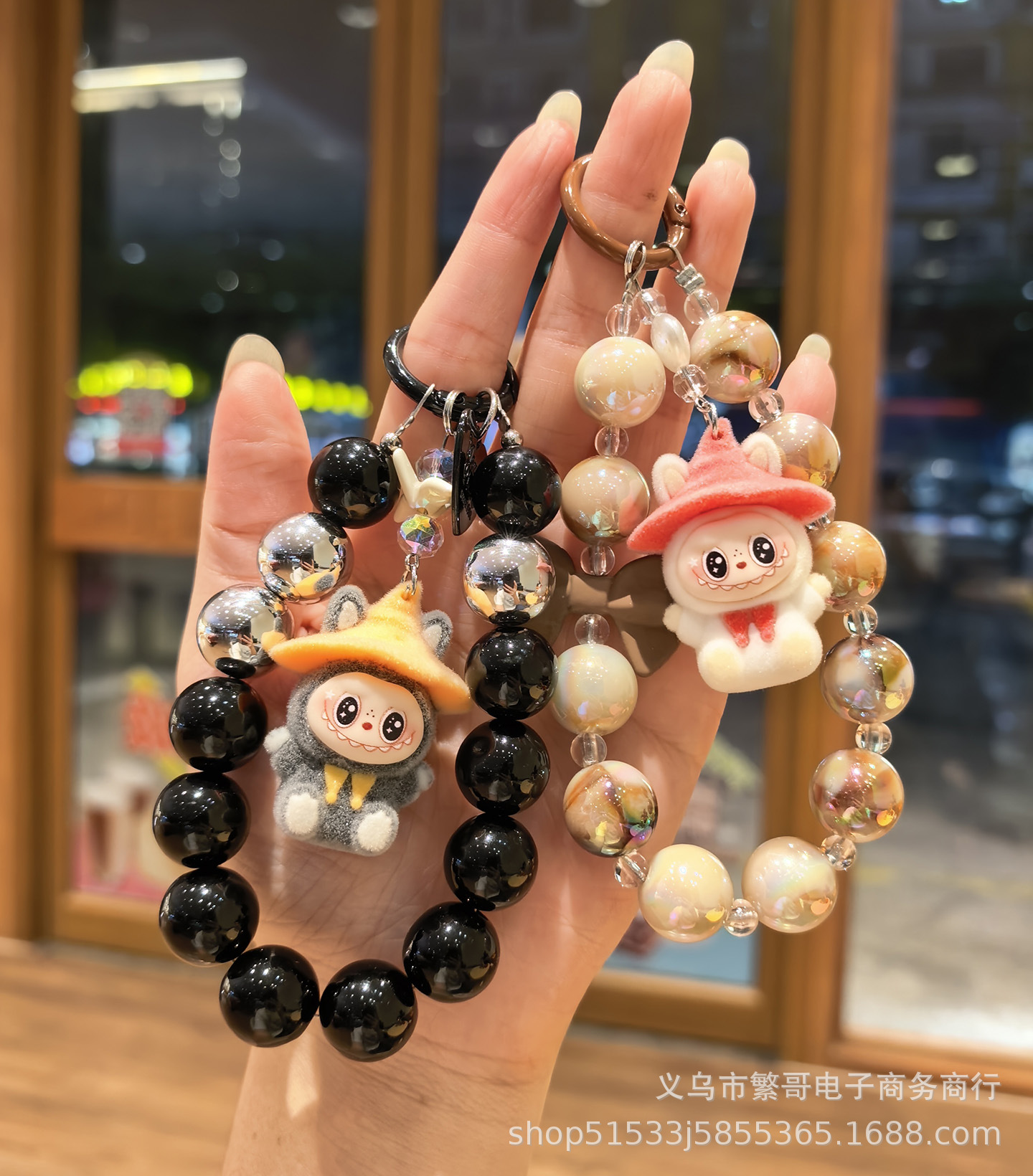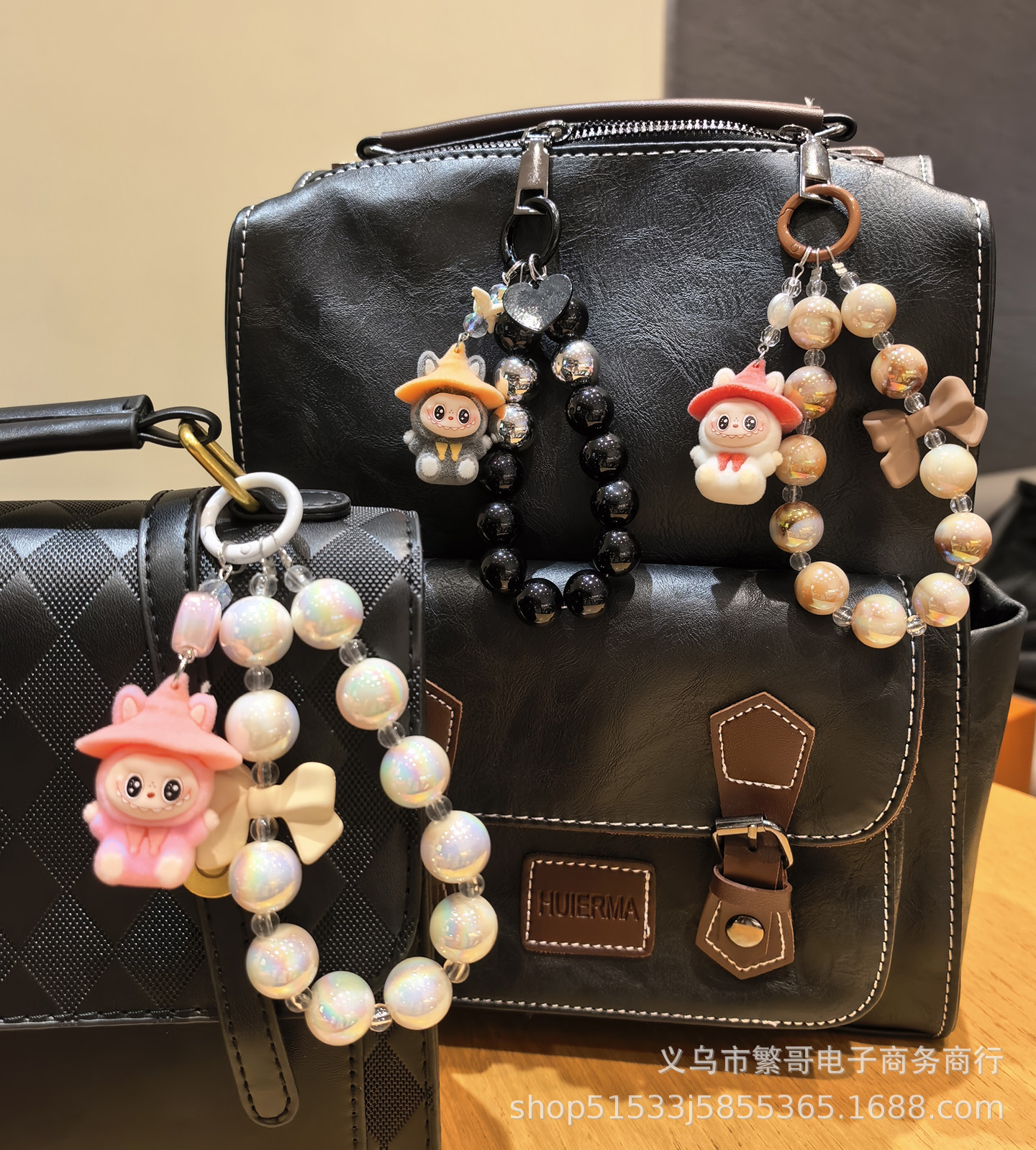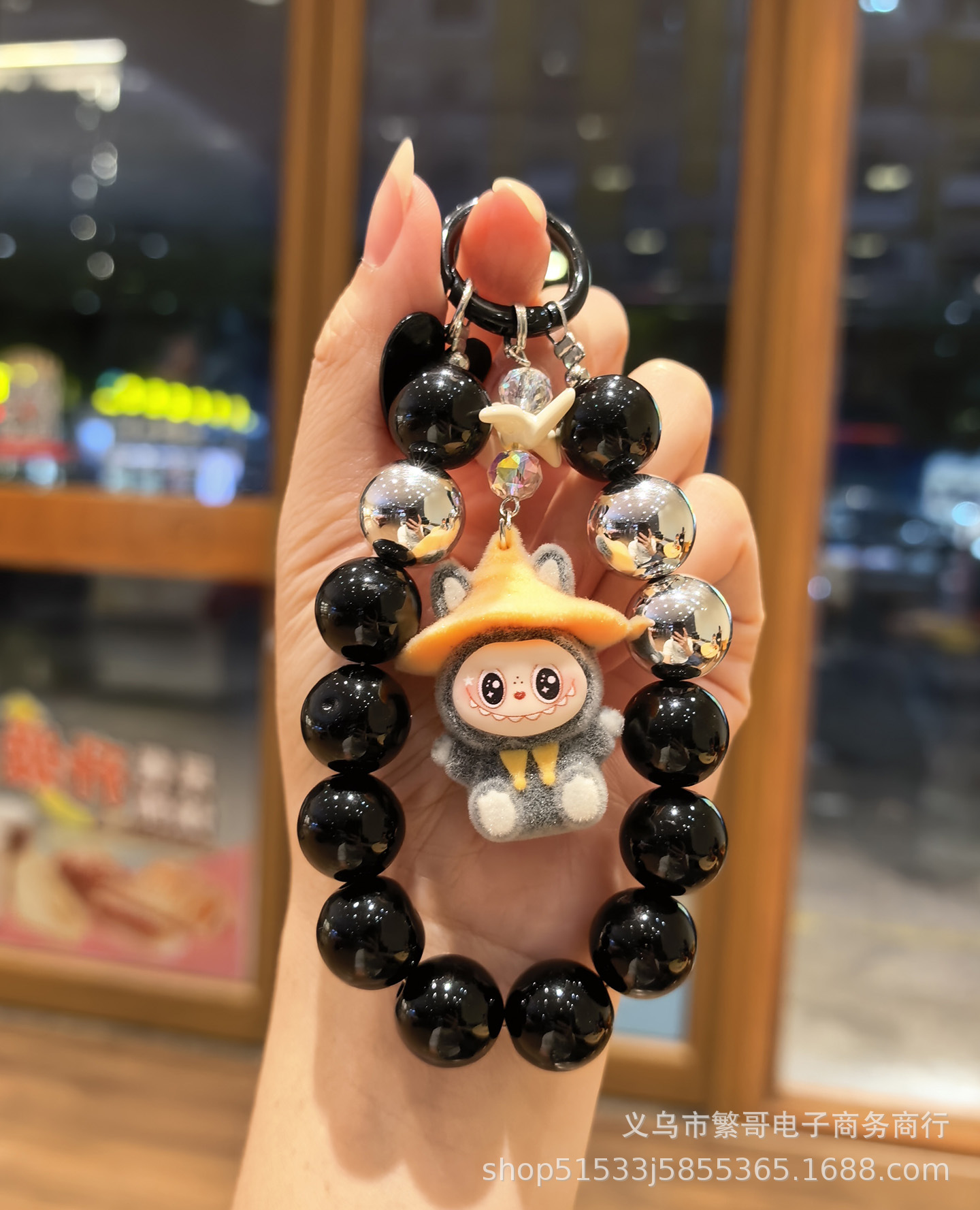black string beads chain + wizard cloth gray
