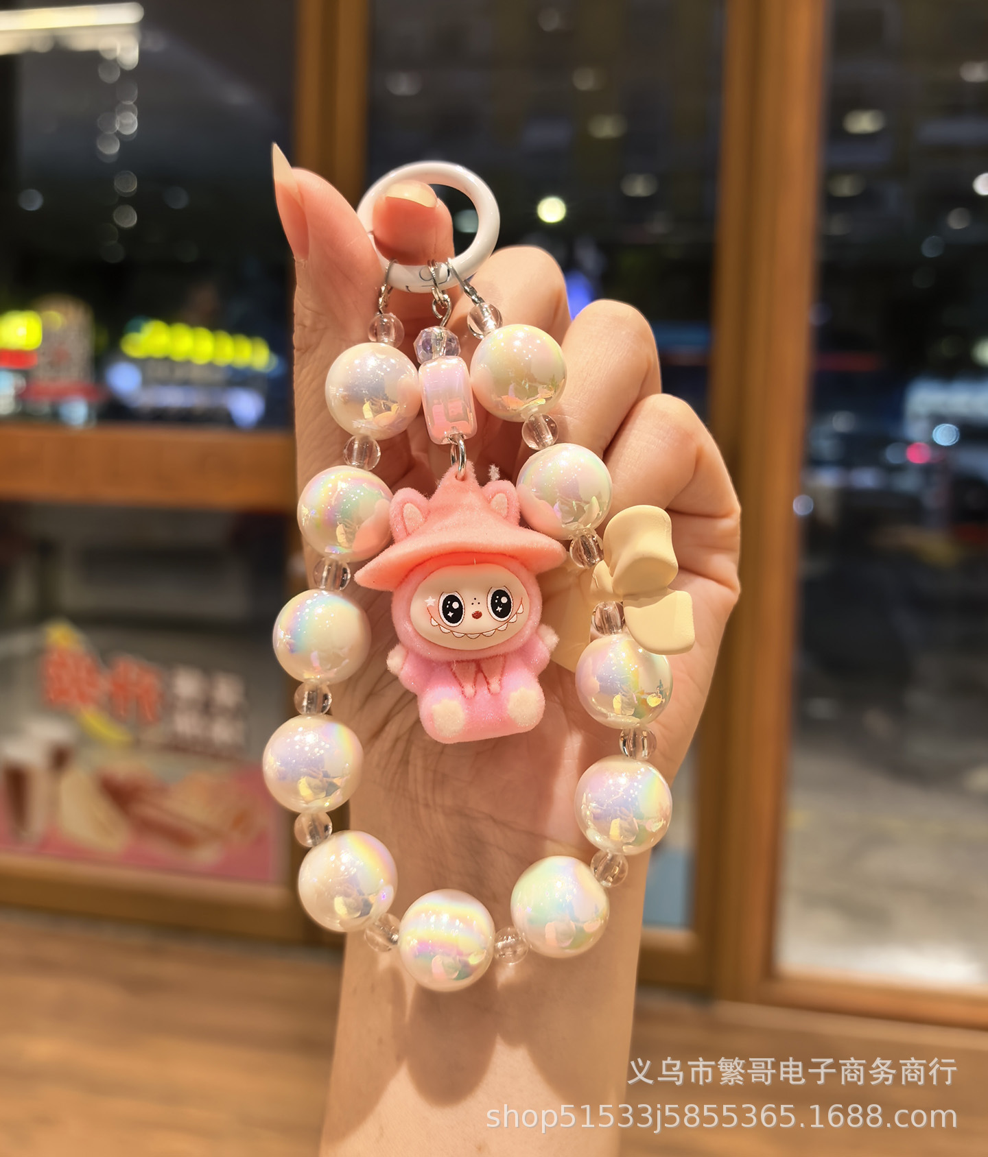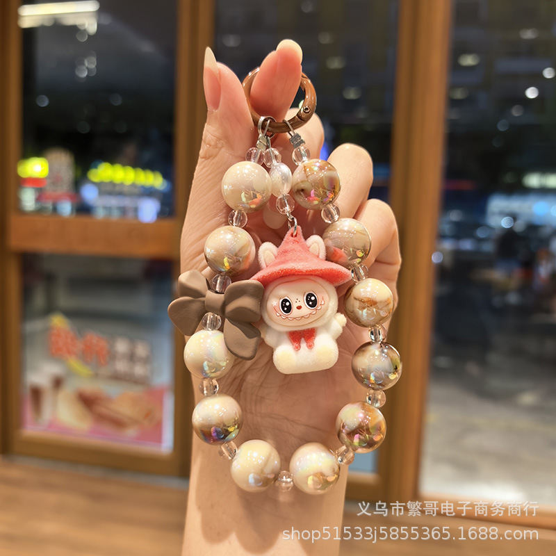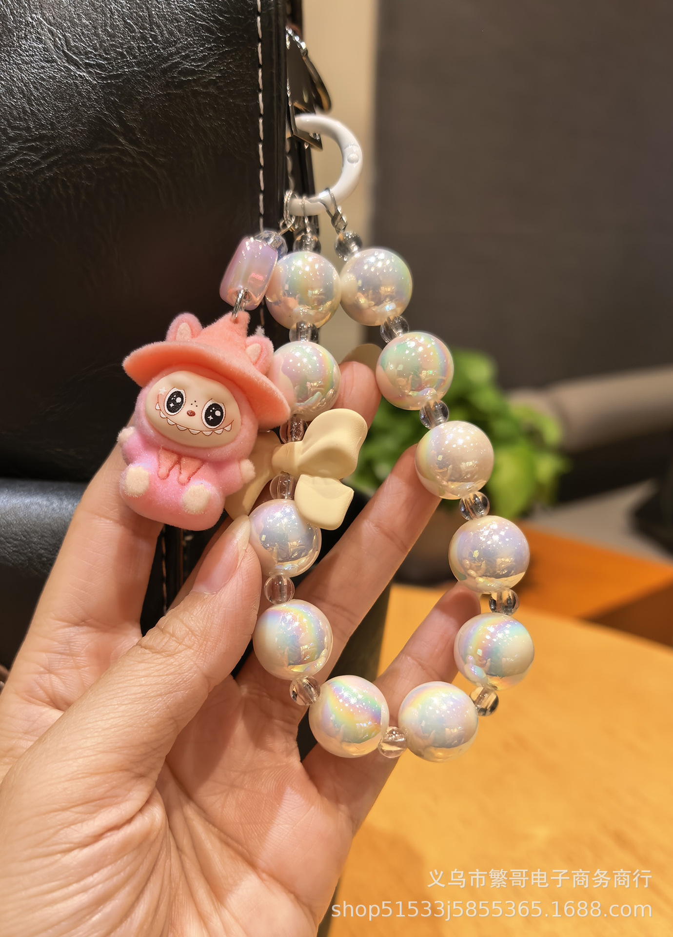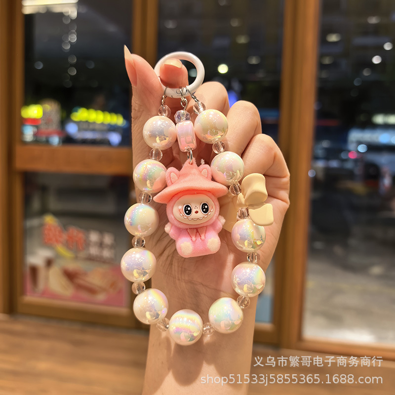 white string beads chain + wizard cloth pink