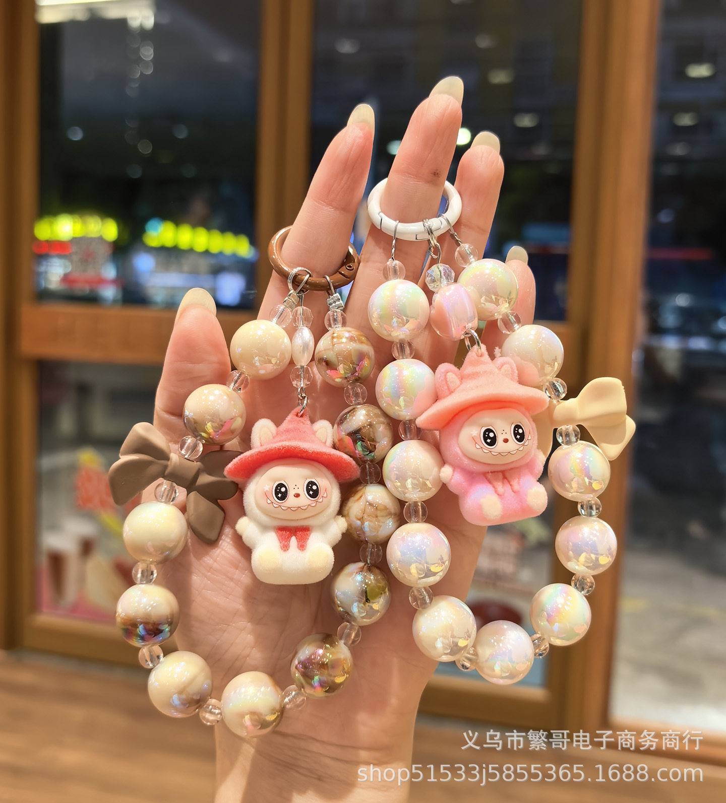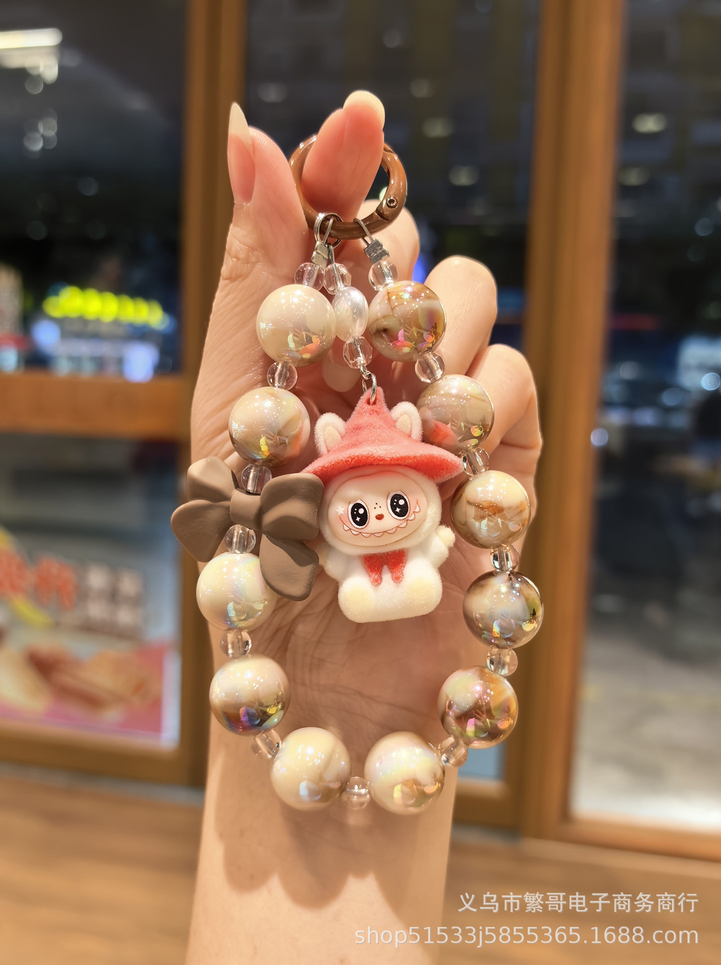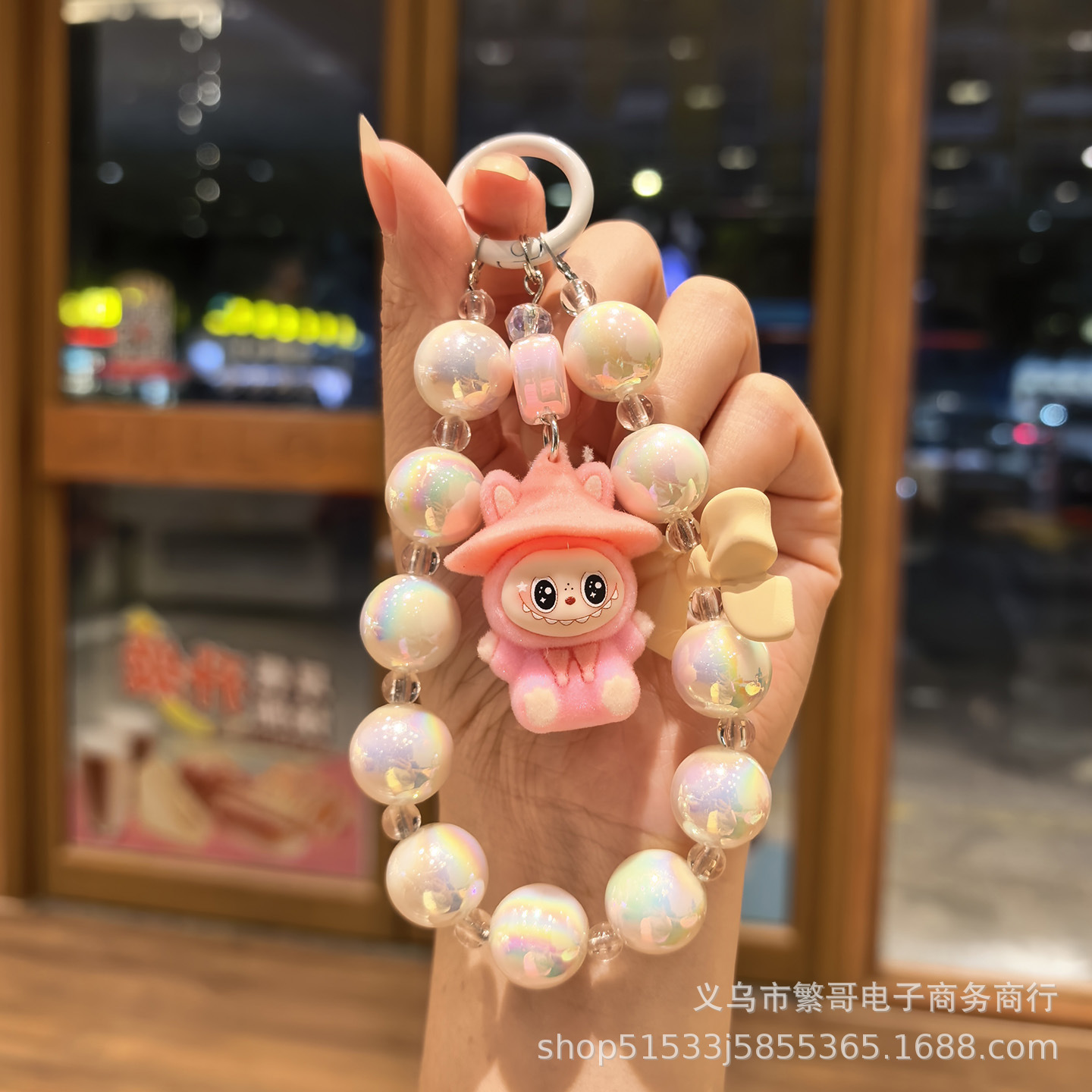 white string beads chain + wizard cloth pink
