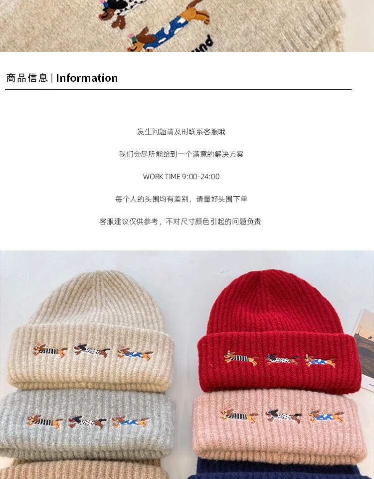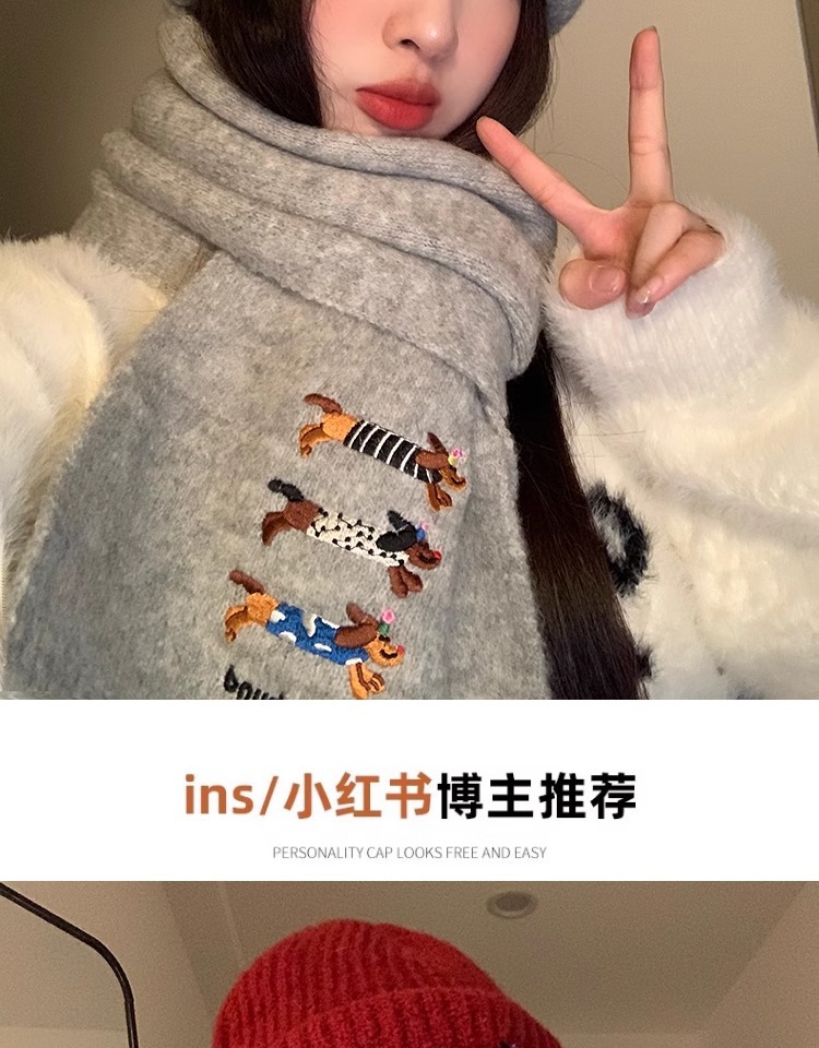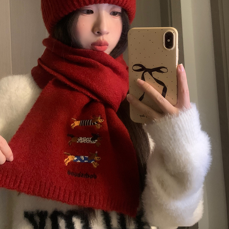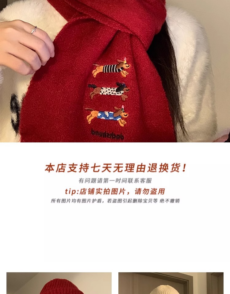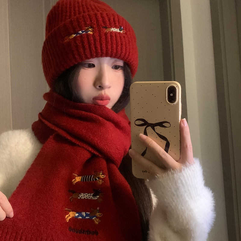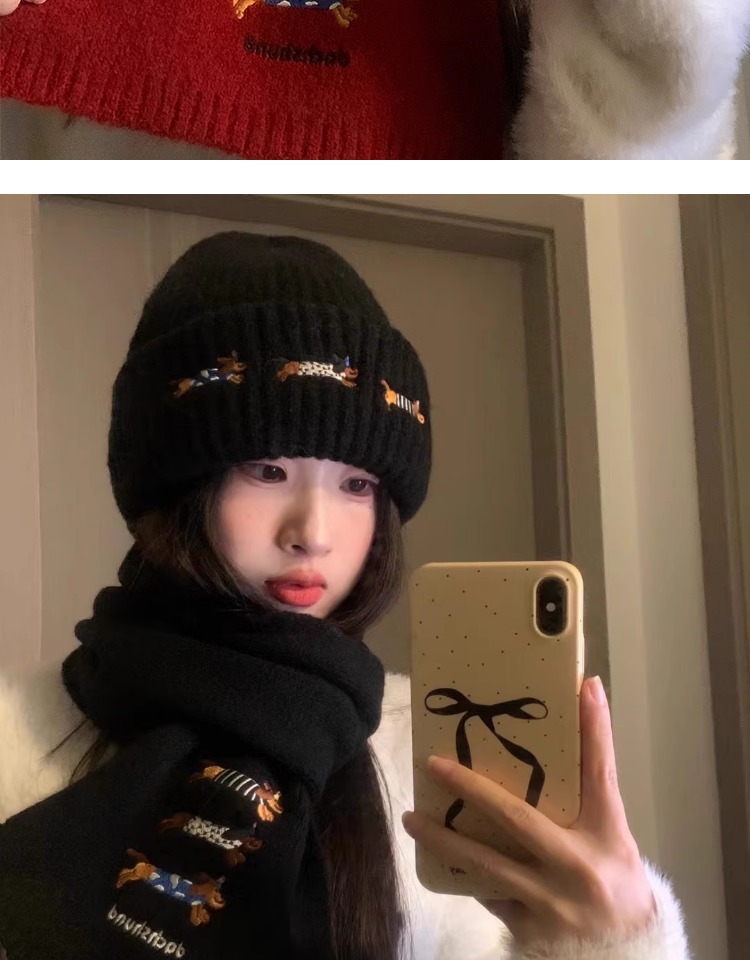 three sausage dog sets [scarf + hat] wine red