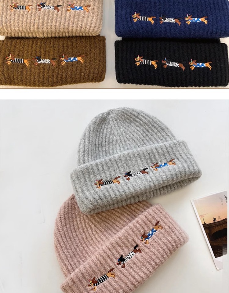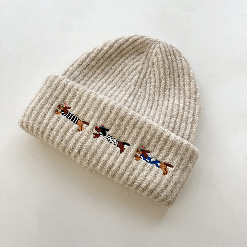 single embroidered sausage dog hat-beige