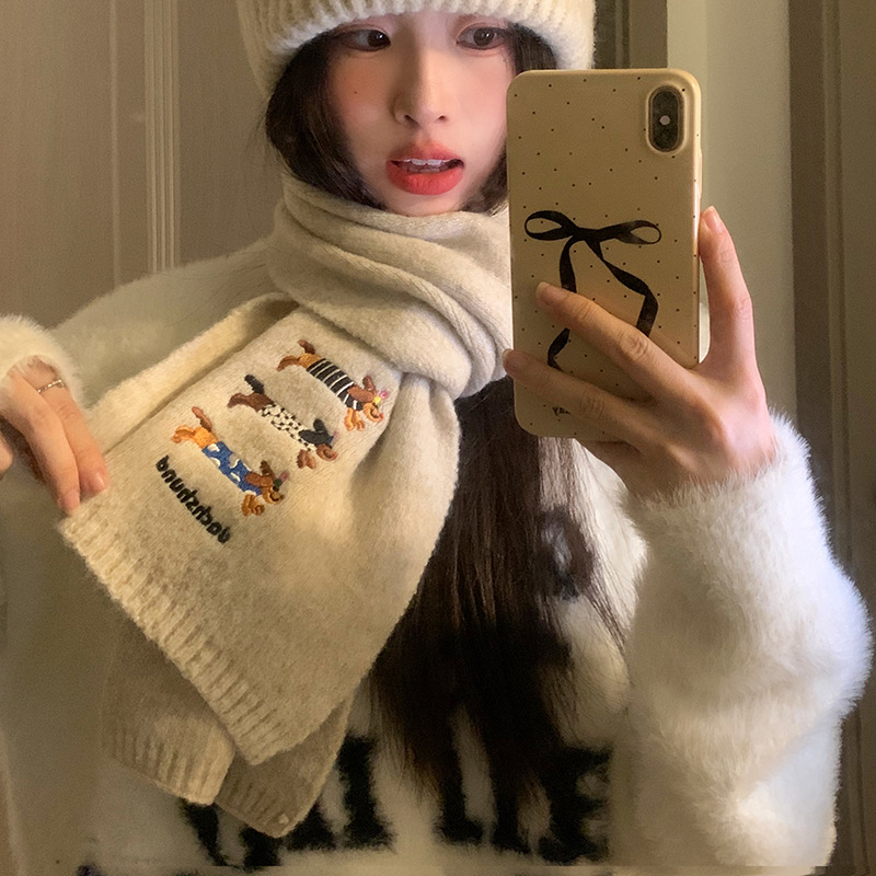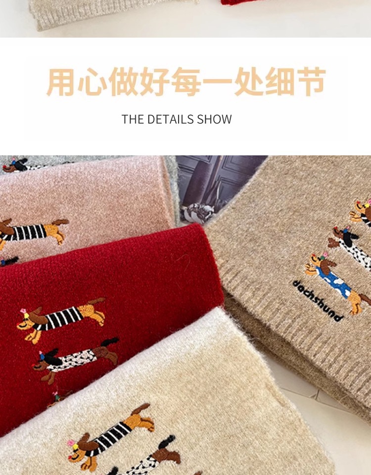 sausage dog scarf-beige