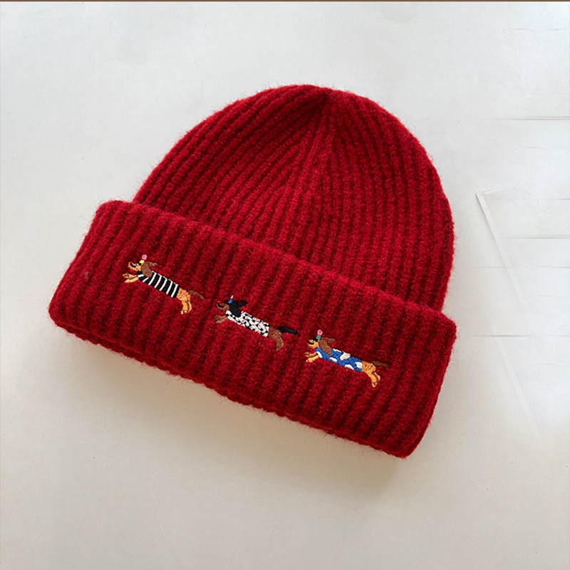single embroidered sausage dog hat-wine red