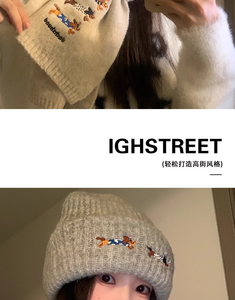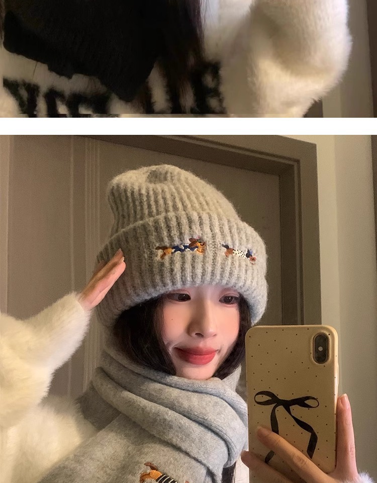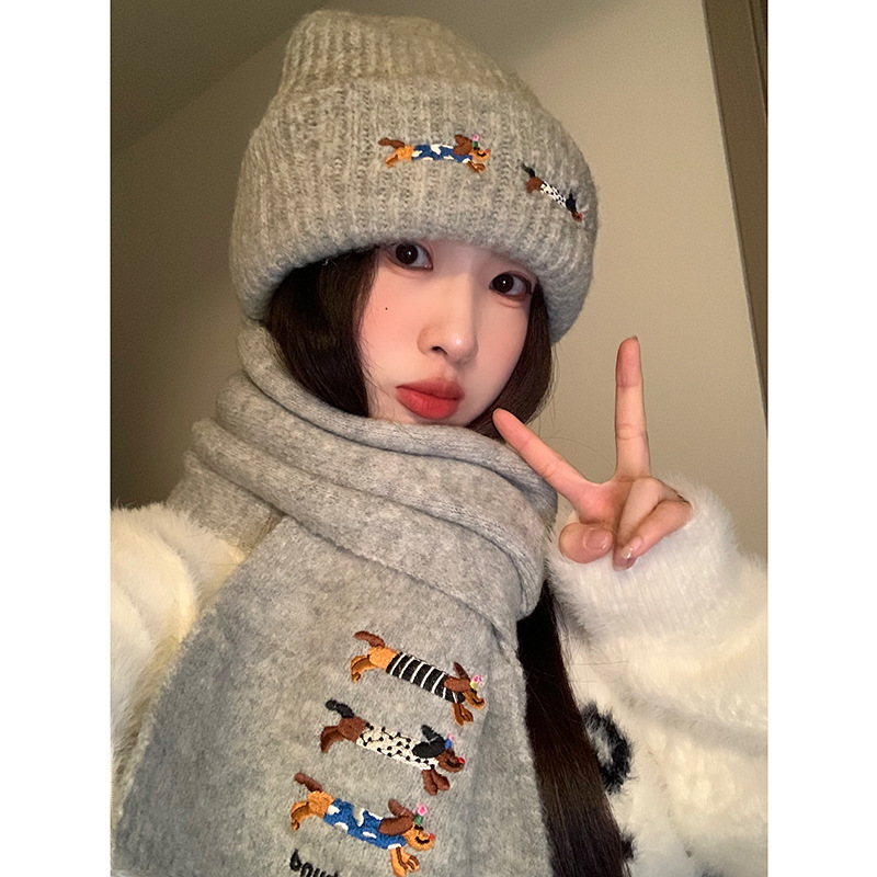 three sausage dog sets [scarf + hat] gray