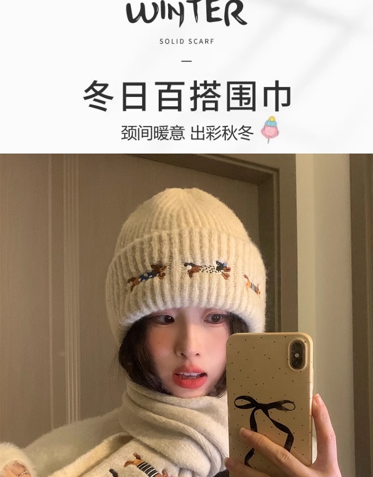 three sausage dog sets [scarf + hat] beige