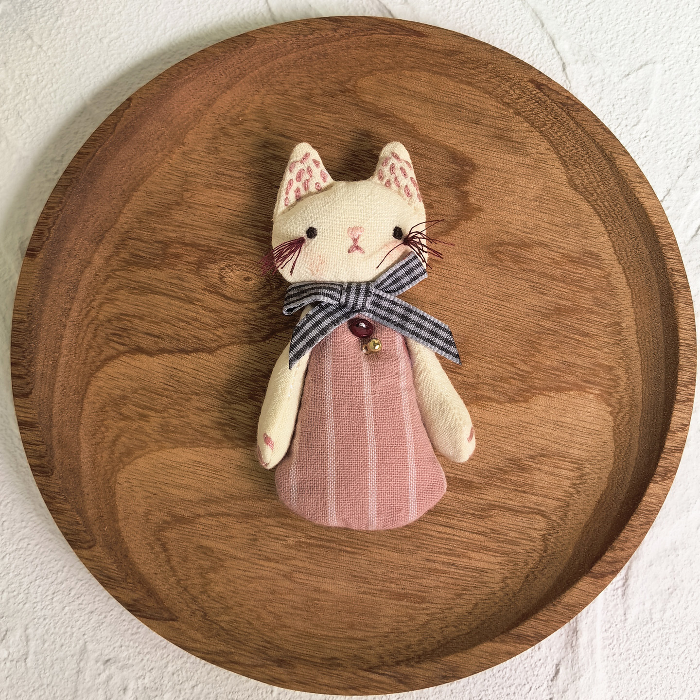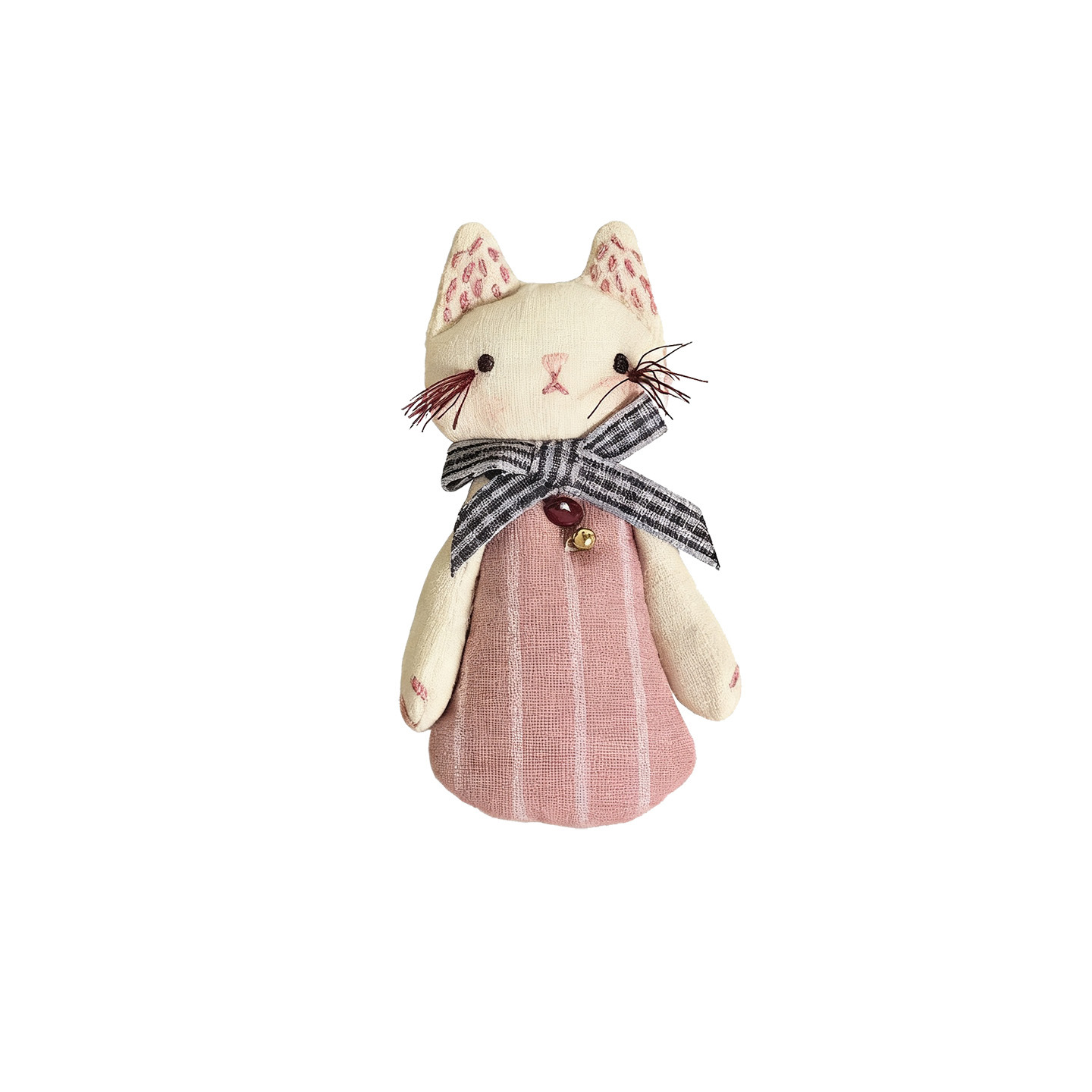 [door latch + lobster buckle] striped bow cat-pink