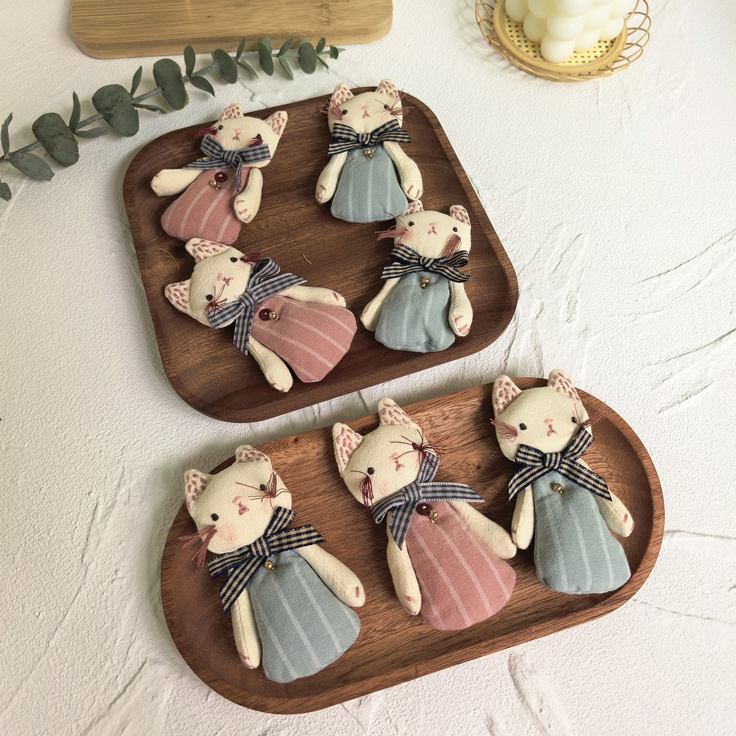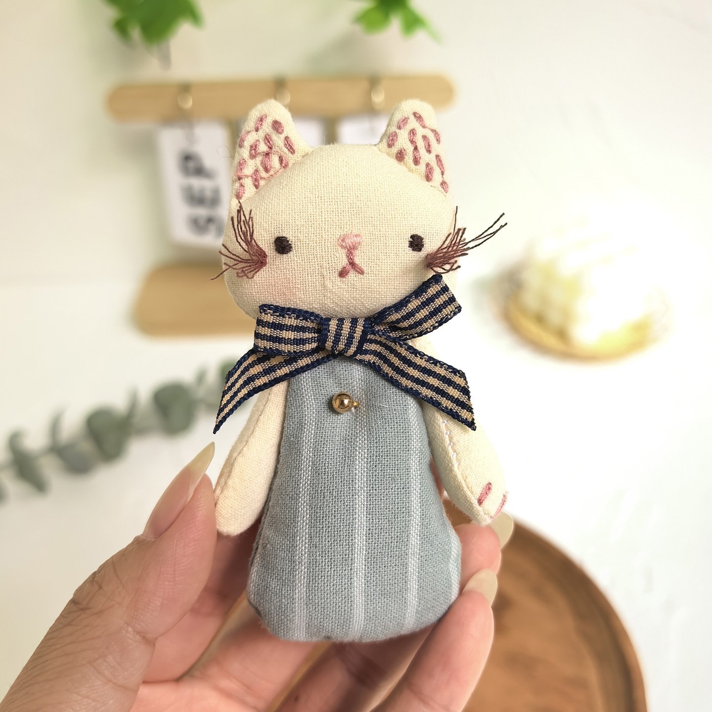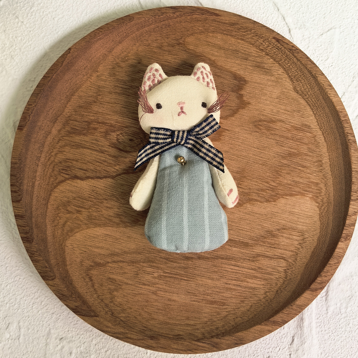 [door latch + lobster buckle] striped bow cat-blue