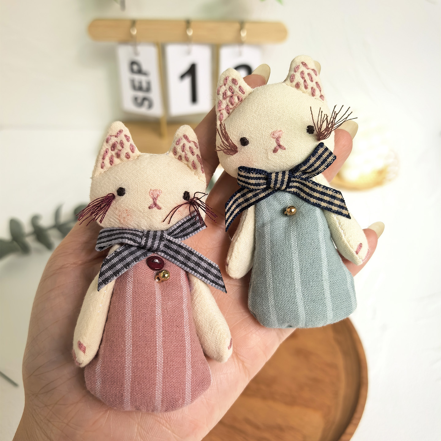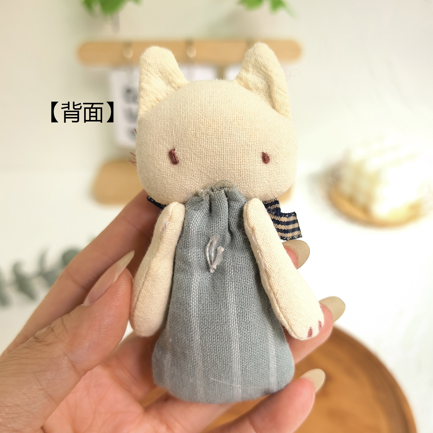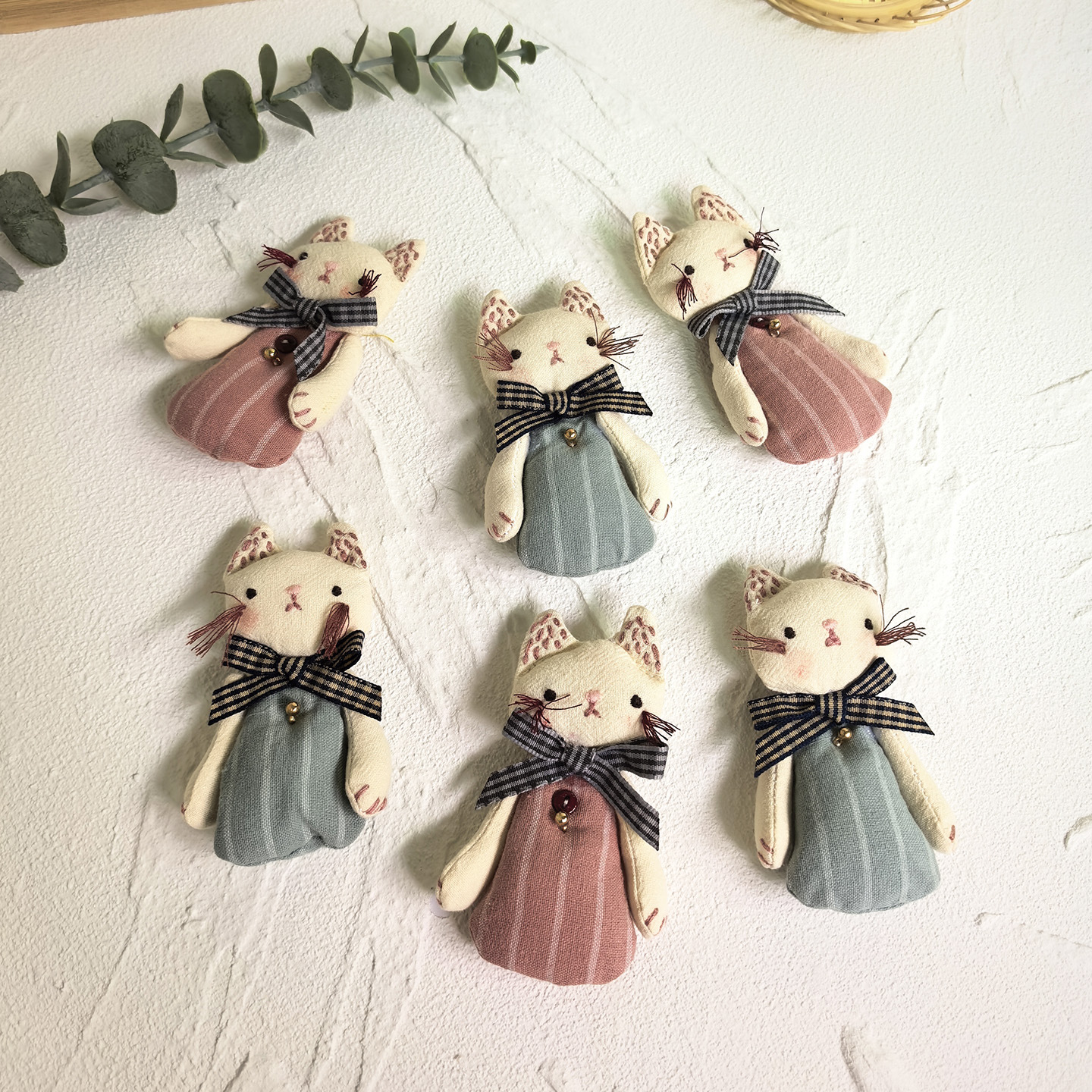 [door latch + lobster buckle] striped bow cat-blue
