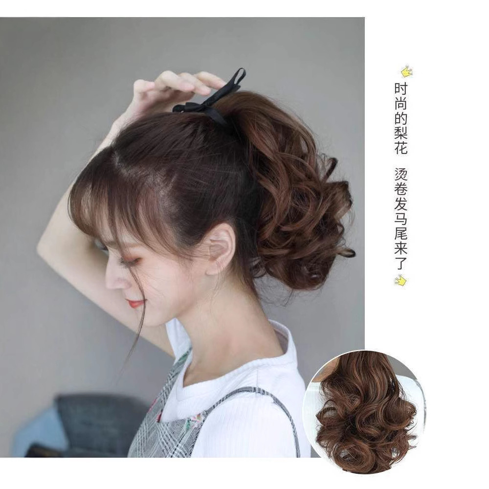 pear-shaped hair roll short ponytail wig female fluffy bandage low ponytail natural simulation hair long hair high ponytail wig braid