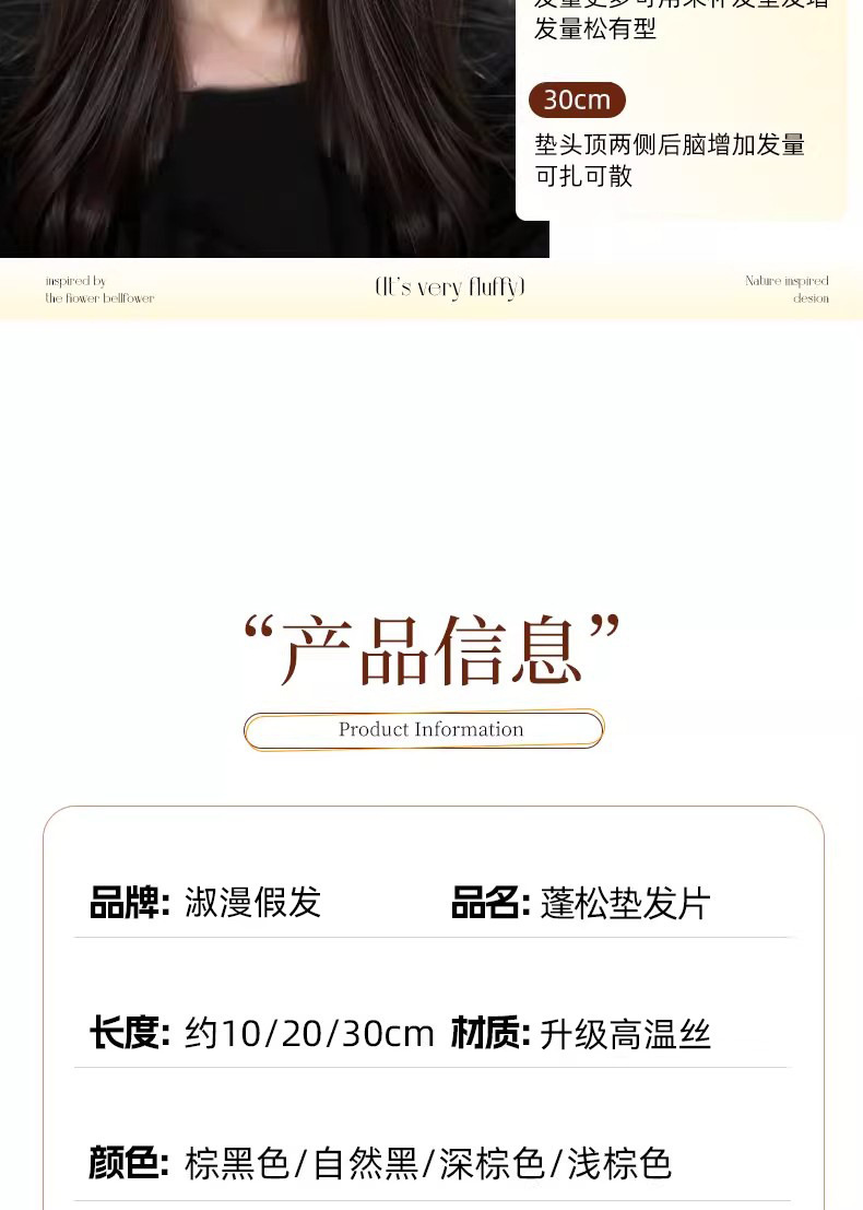2-card sponge mat hair piece 30cm --- brown-black
