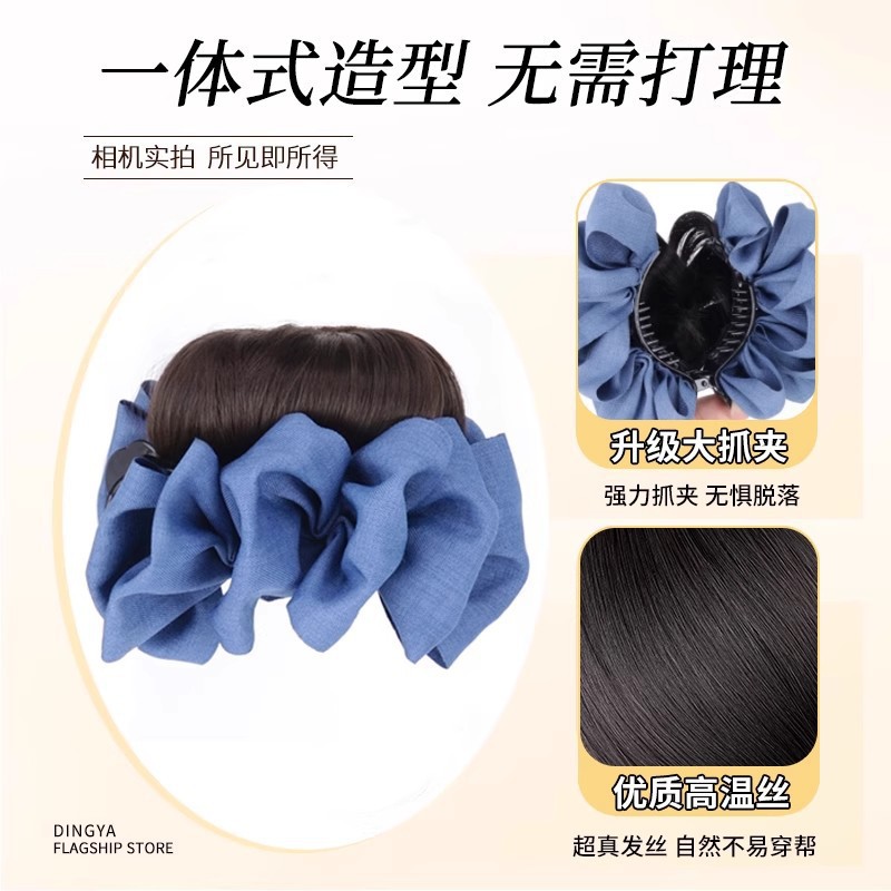 bun grip hair band blue denim balls clip extra hair volume lazy updo bud bun wig grip