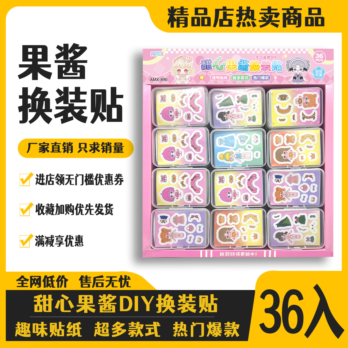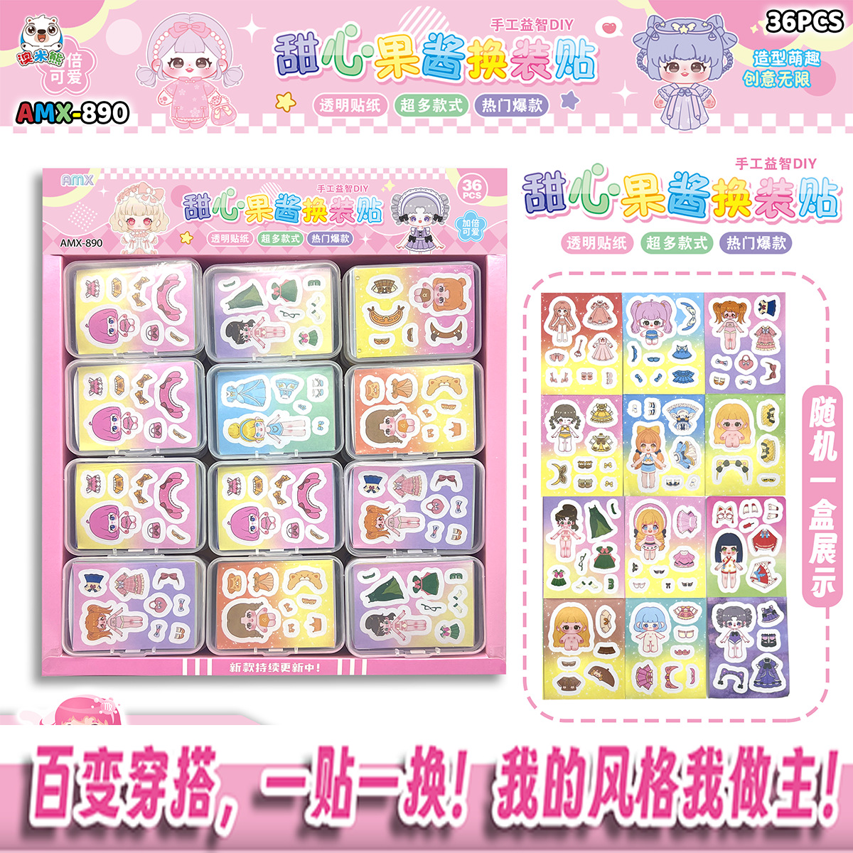 36 into beautiful girl changing stickers boxed sweetheart self-adhesive mini princess children student favorite diy stickers for journals book