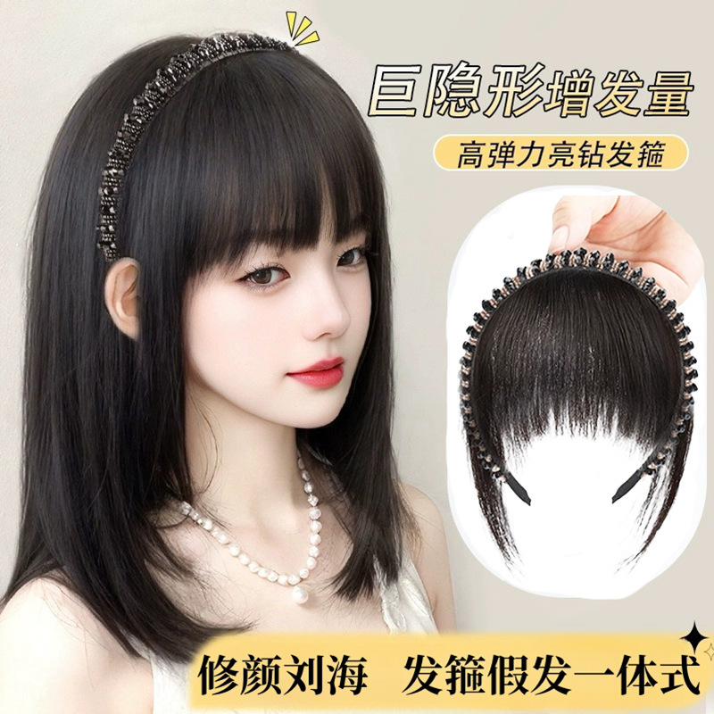 rhinestone headband bangs with horns-natural color