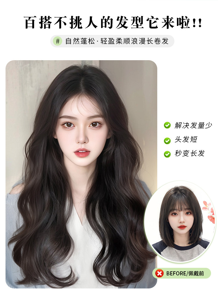 goddess big wave [upgrade three-piece]-natural black 50cm