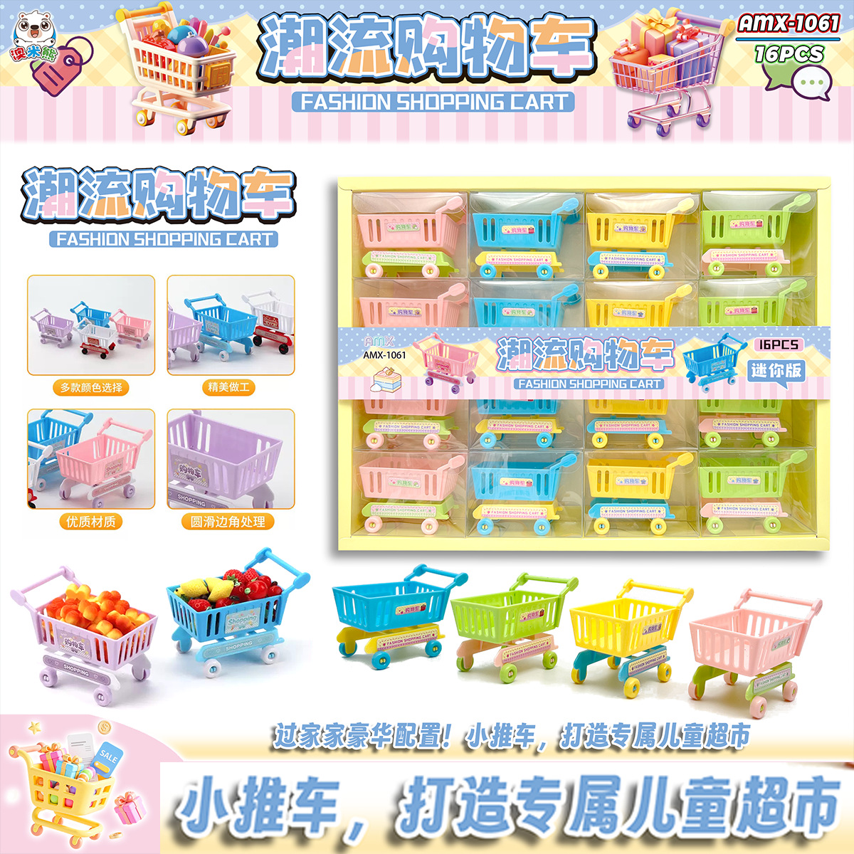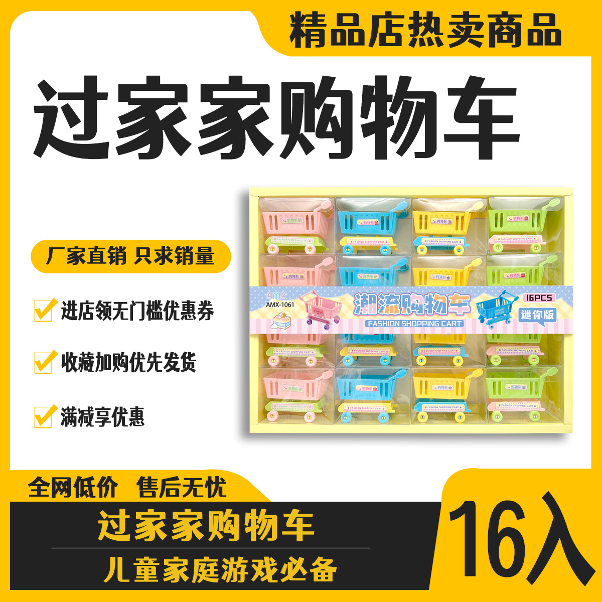 16 into mini cart toy model miniature candy toy children play house simulation supermarket snack shopping cart small