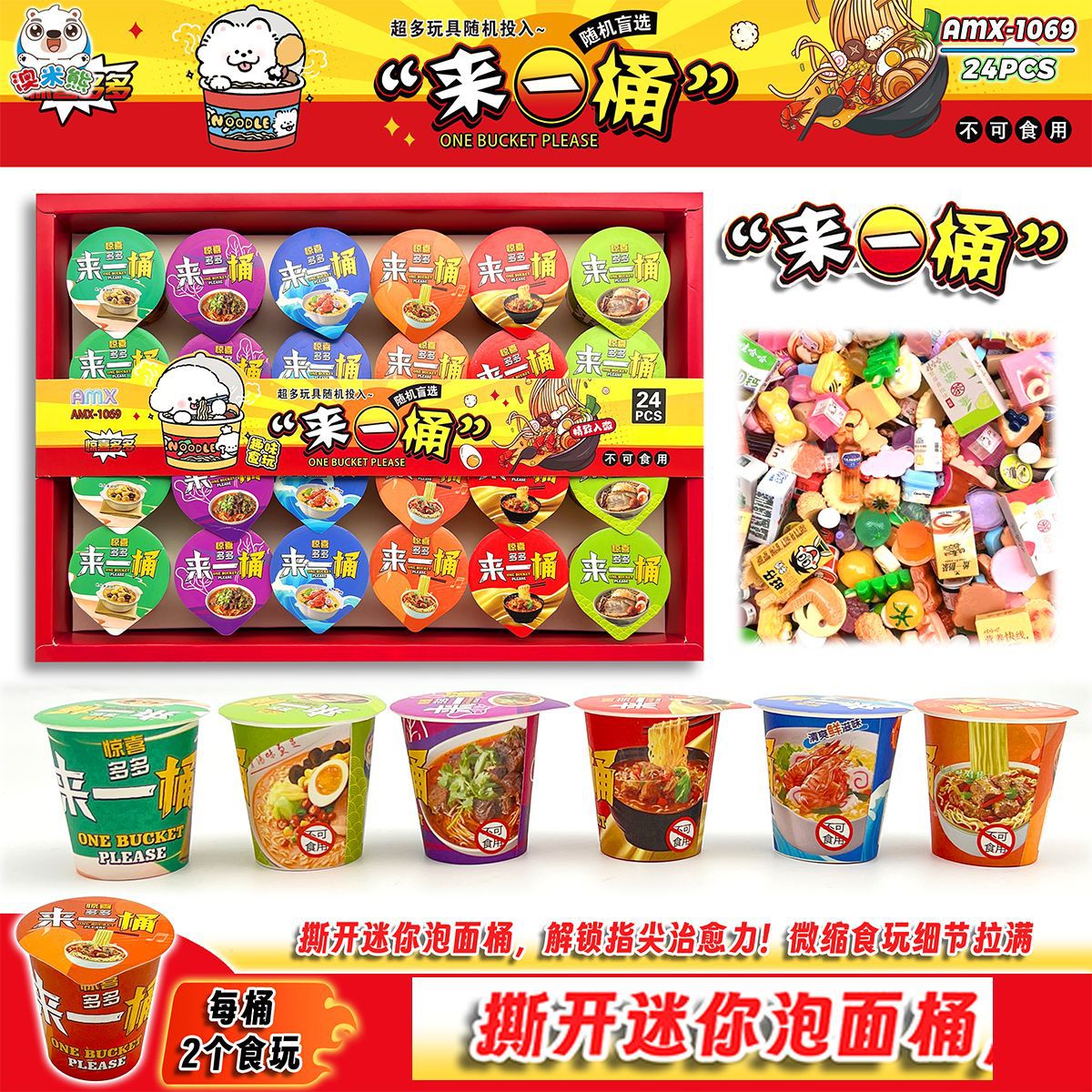 24 in a bucket of instant noodles snack cup instant noodles container candy toy surprise a bucket model blind box decoration split student toys