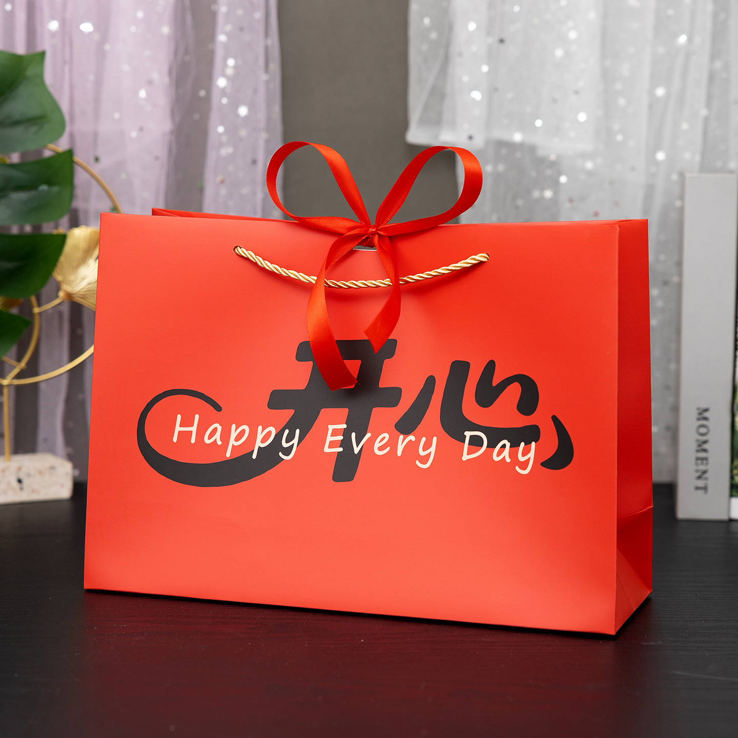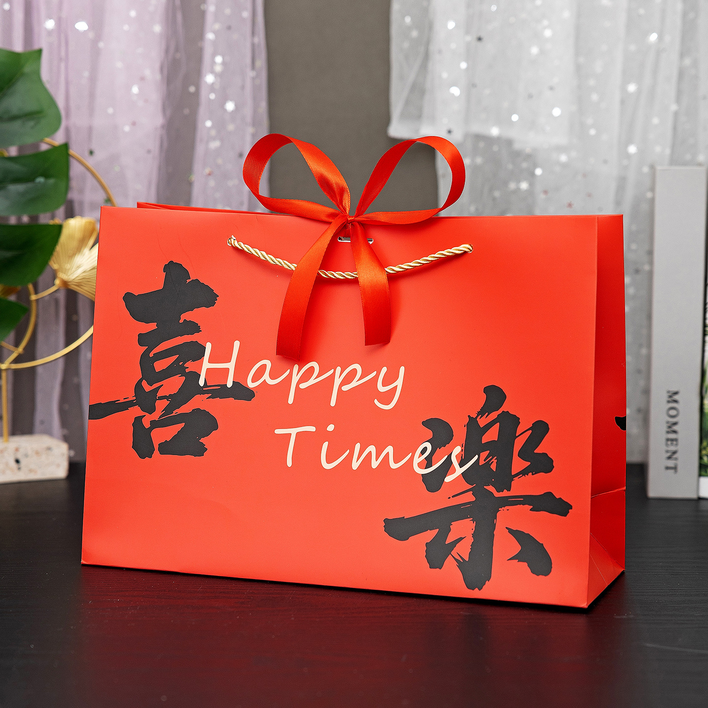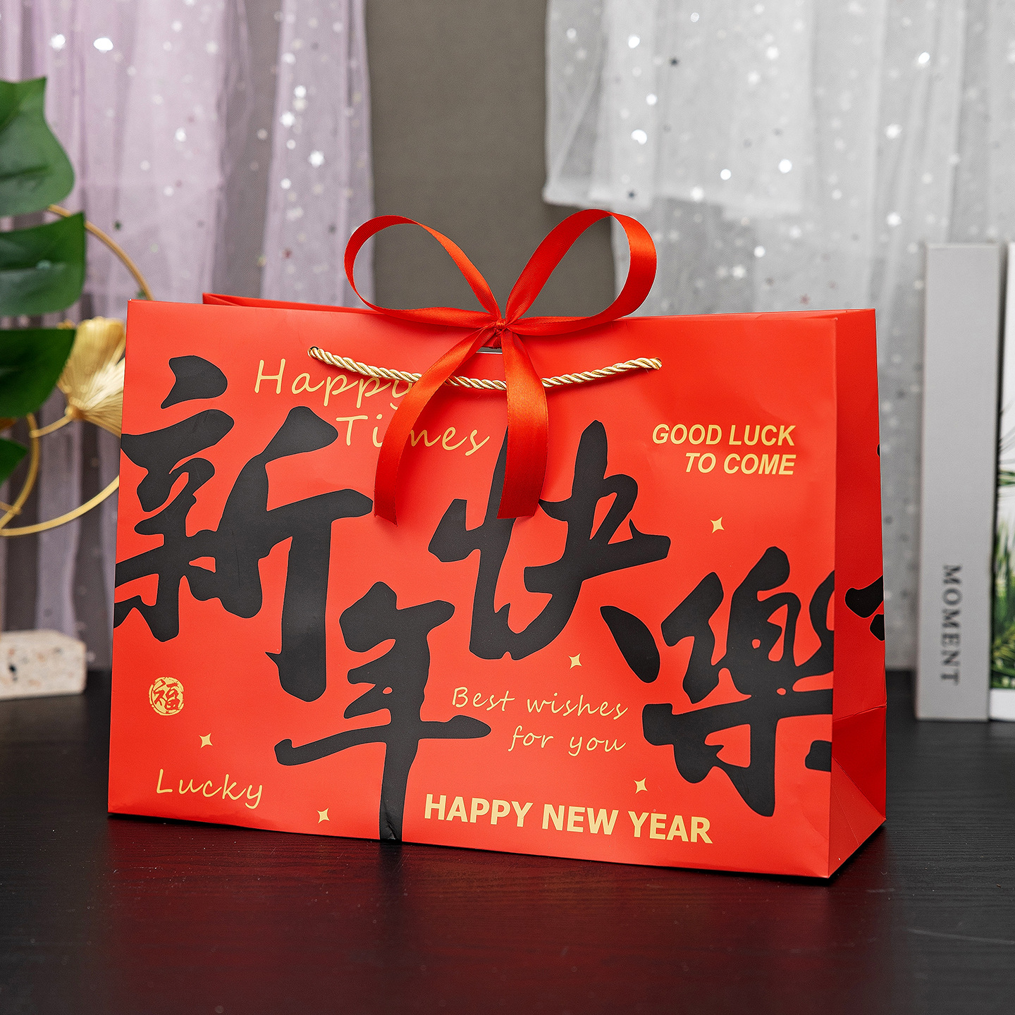 red-happy new year; white cardboard; medium size 25*12*20cm