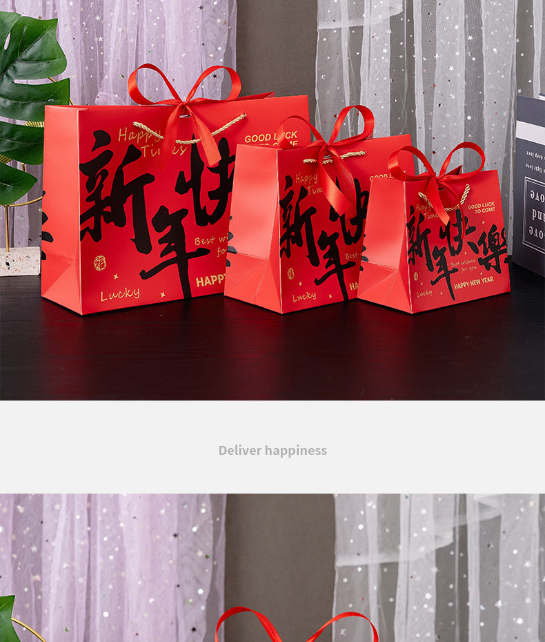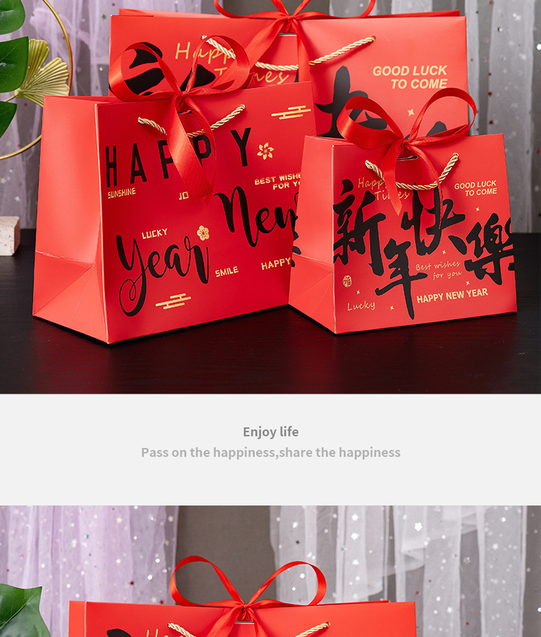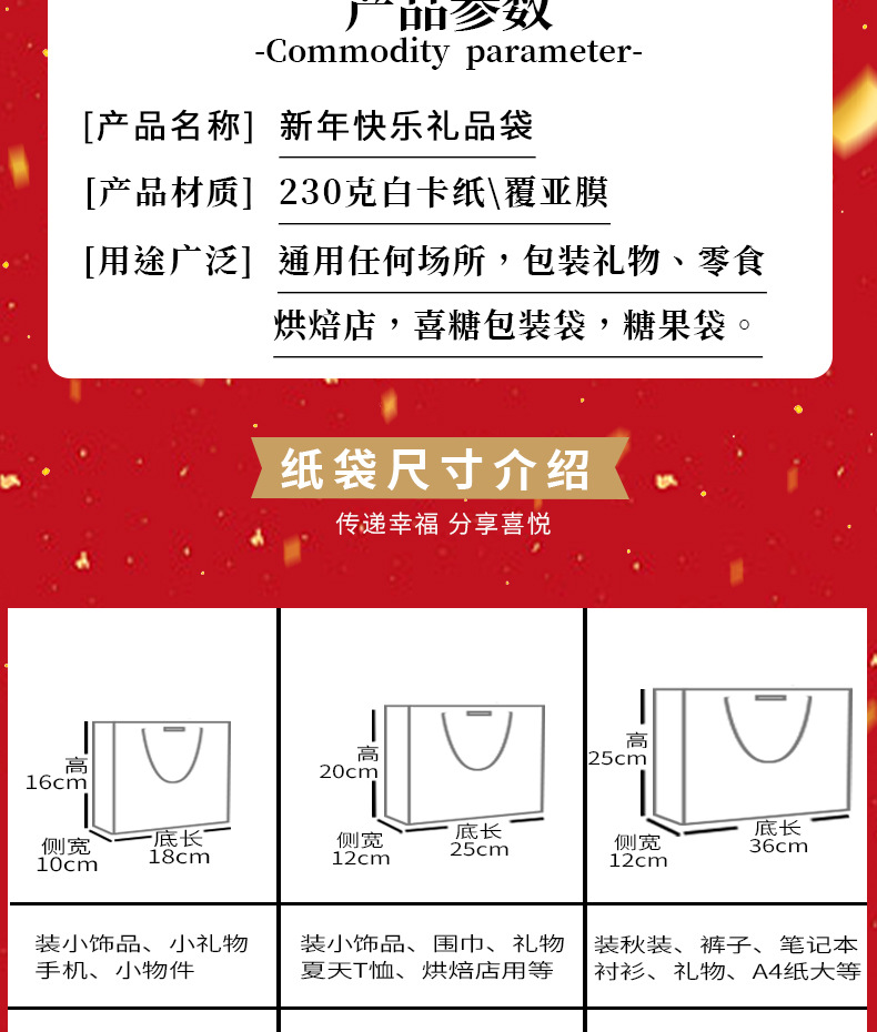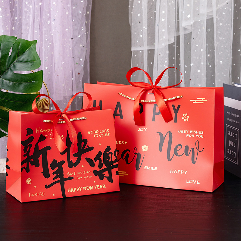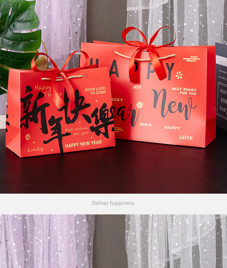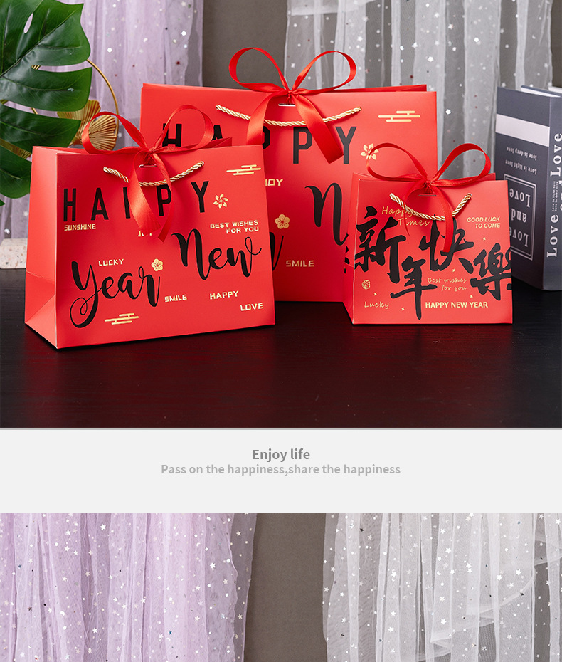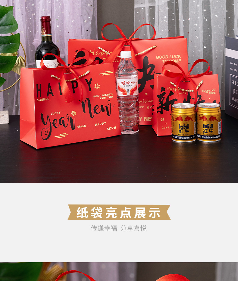 red-happy new year; white cardboard; small size 18*10 * 16cm