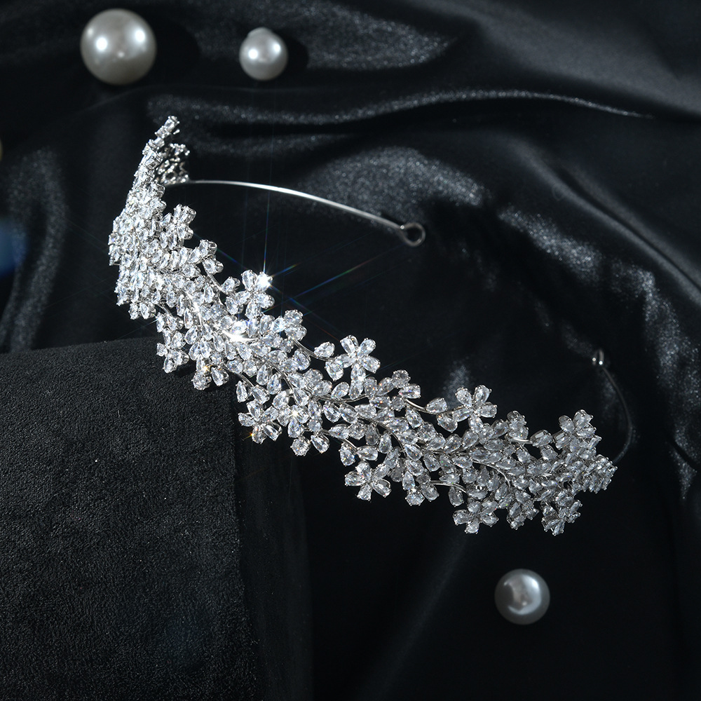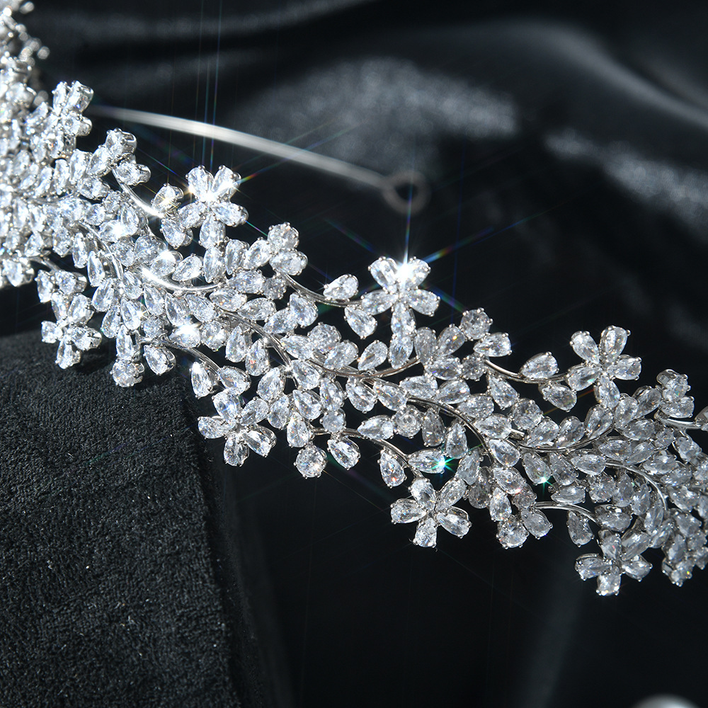 silver flower and leaf zircon headband