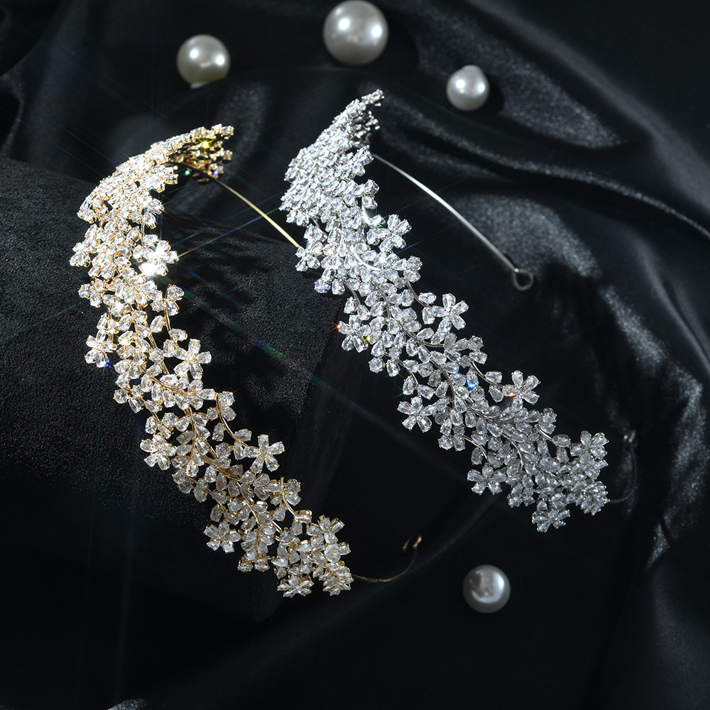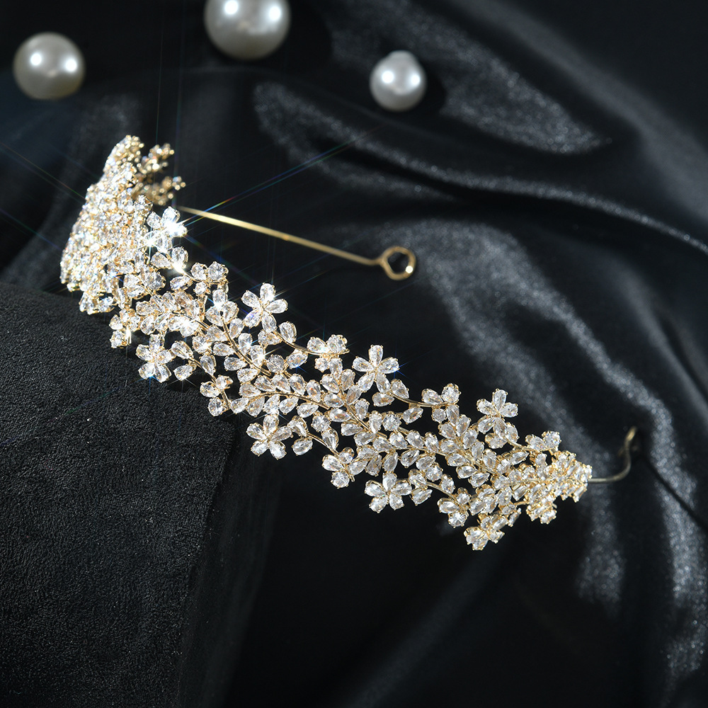 gold flower and leaf zircon headband