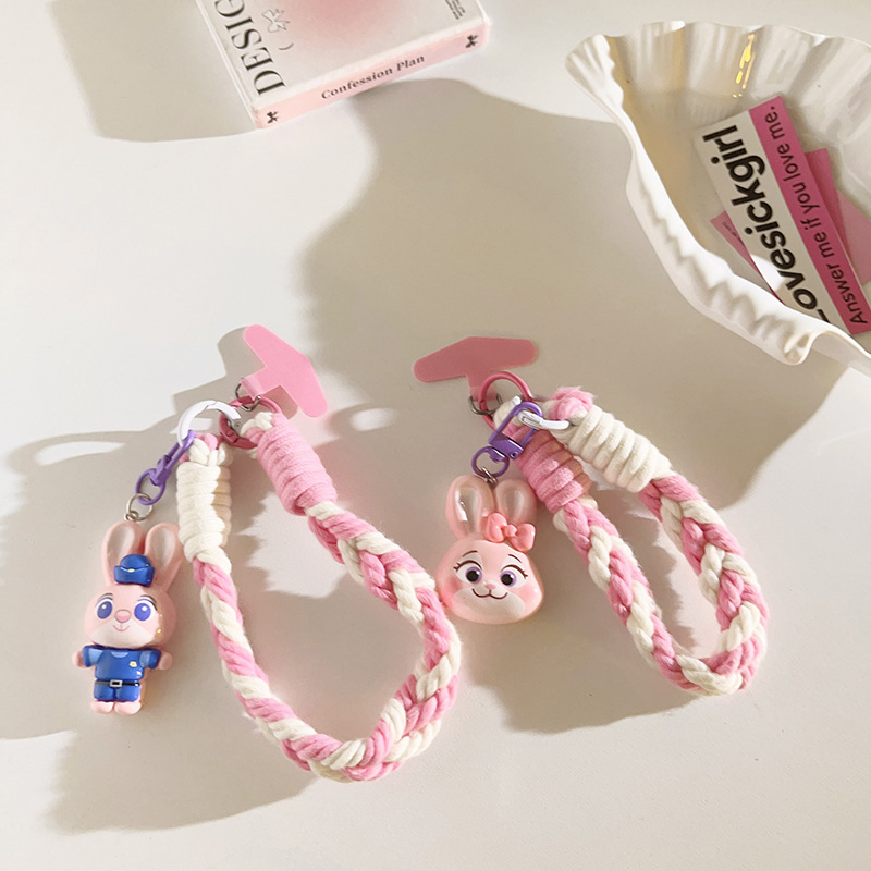 pink whole body rabbit police officer pendant + four strands pink white + pink triangle