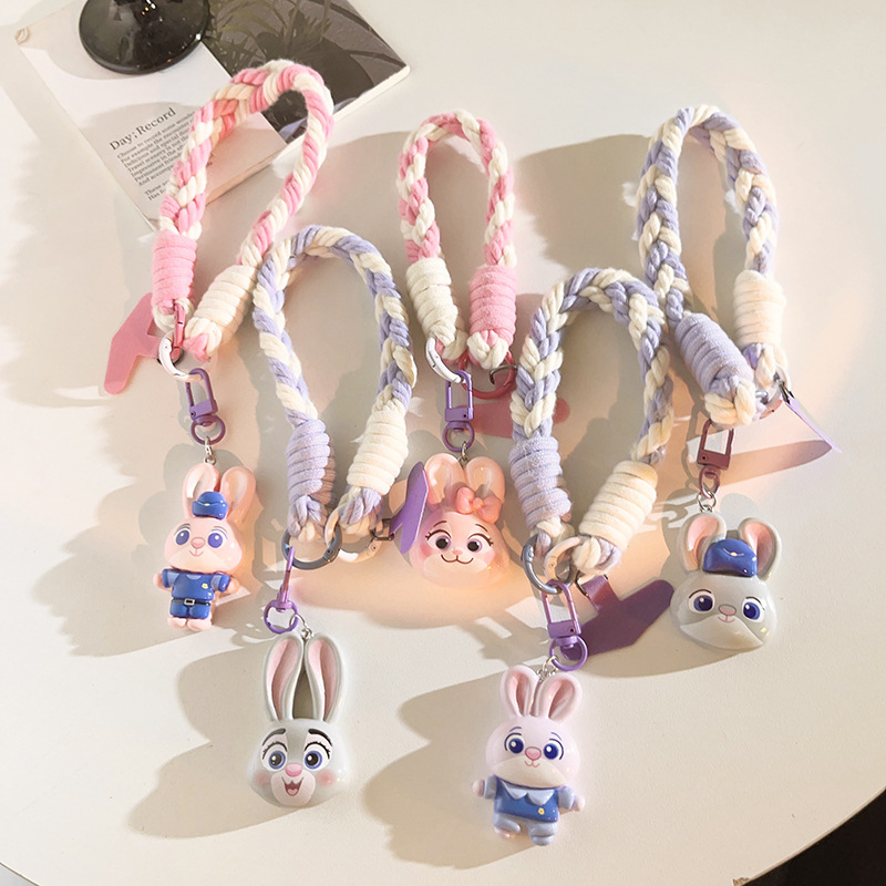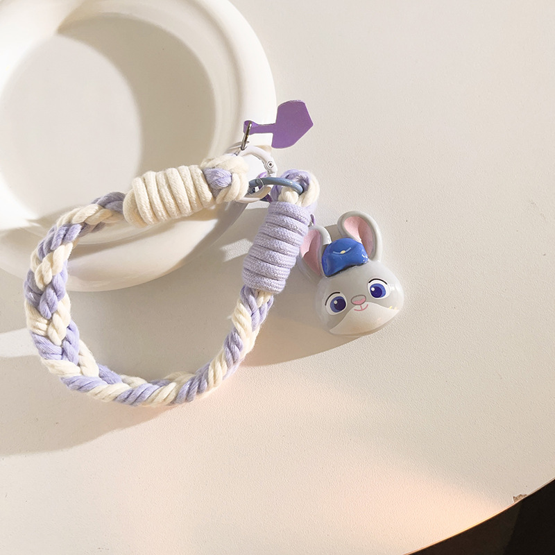 purple whole body rabbit police officer pendant + four-strand light purple + purple triangle