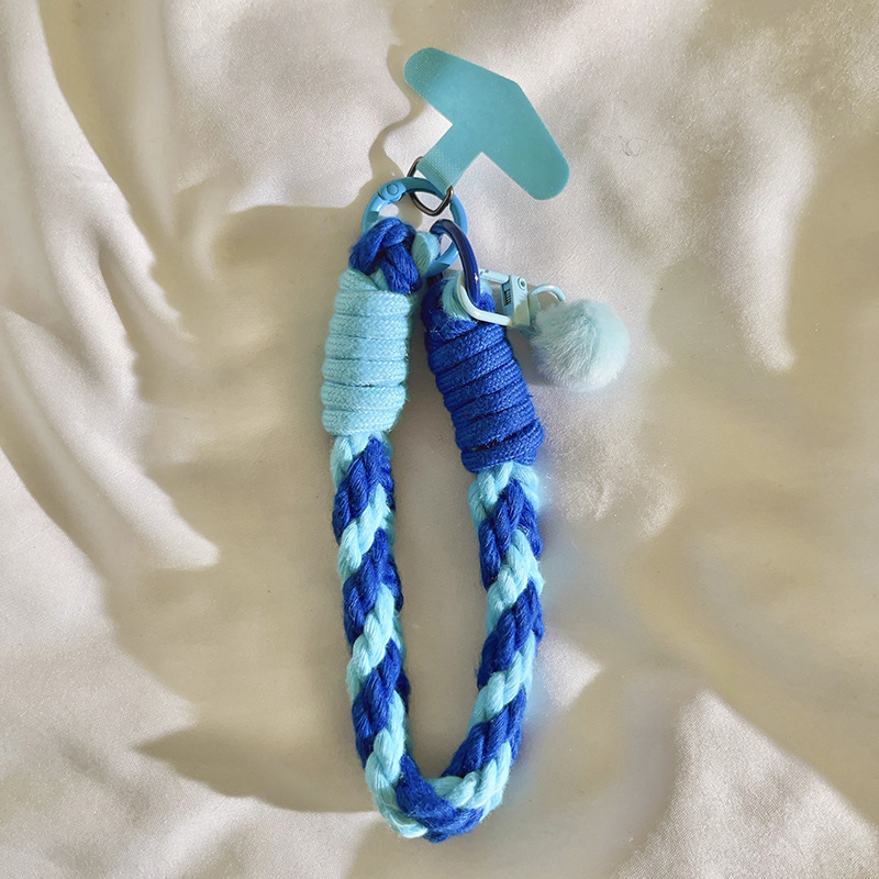 blue pompons door latch + four strands sapphire blue and sky blue + sky blue triangle