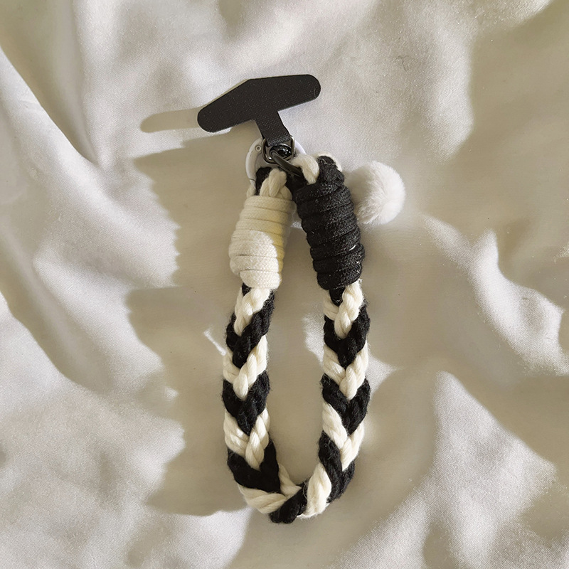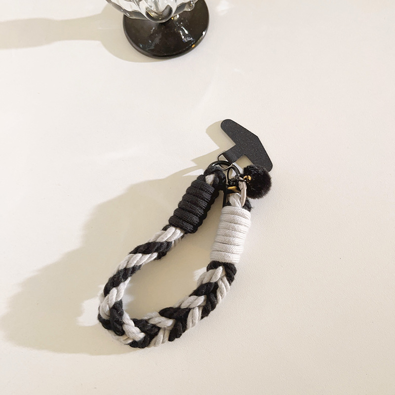 white pompons door latch + four strands black and white + black triangle