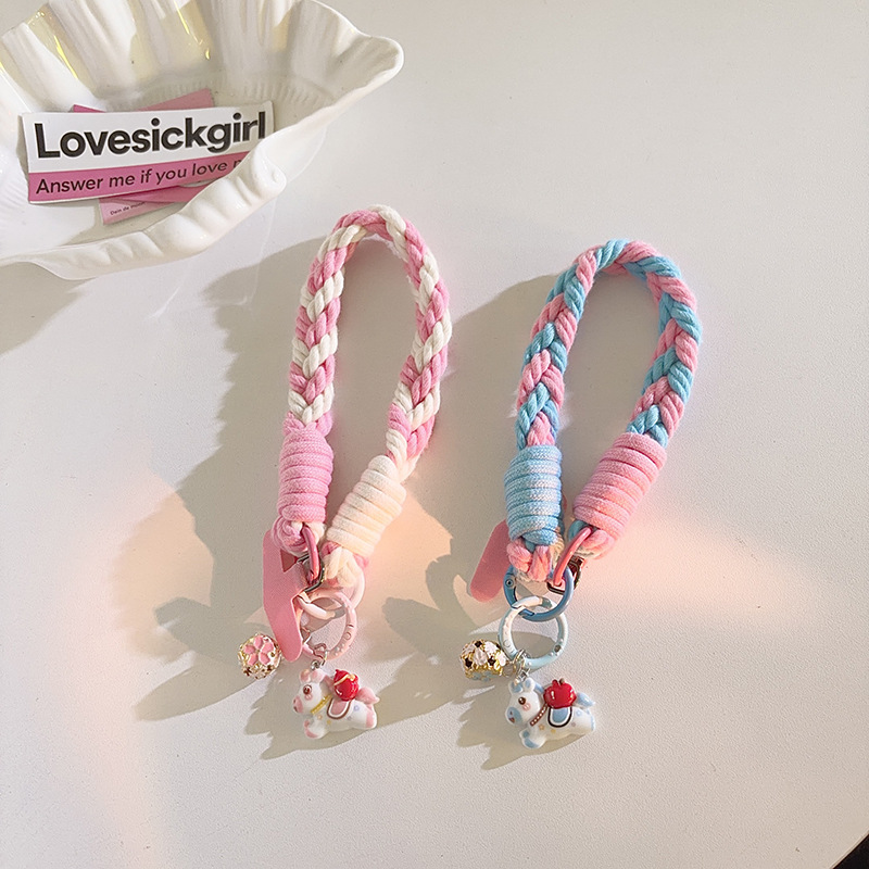 blue flower bell horse + four strands blue pink + pink triangle