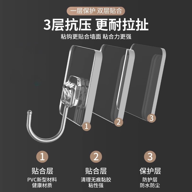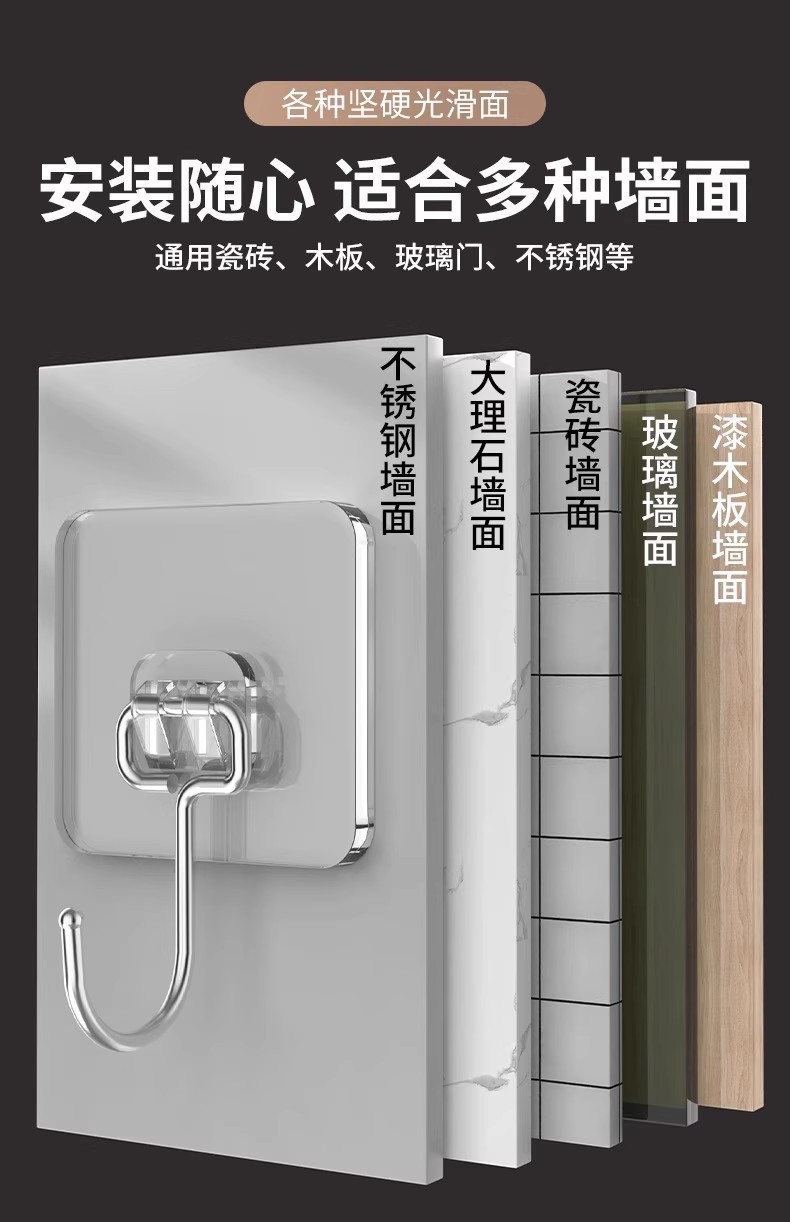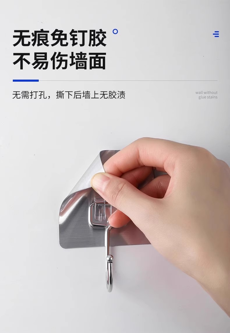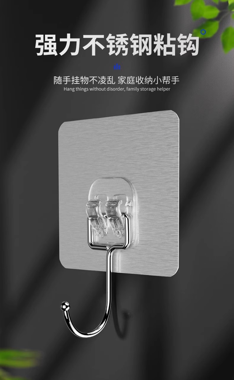 strong adhesive stainless steel solid big hook [10 packs] drop guaranteed compensation