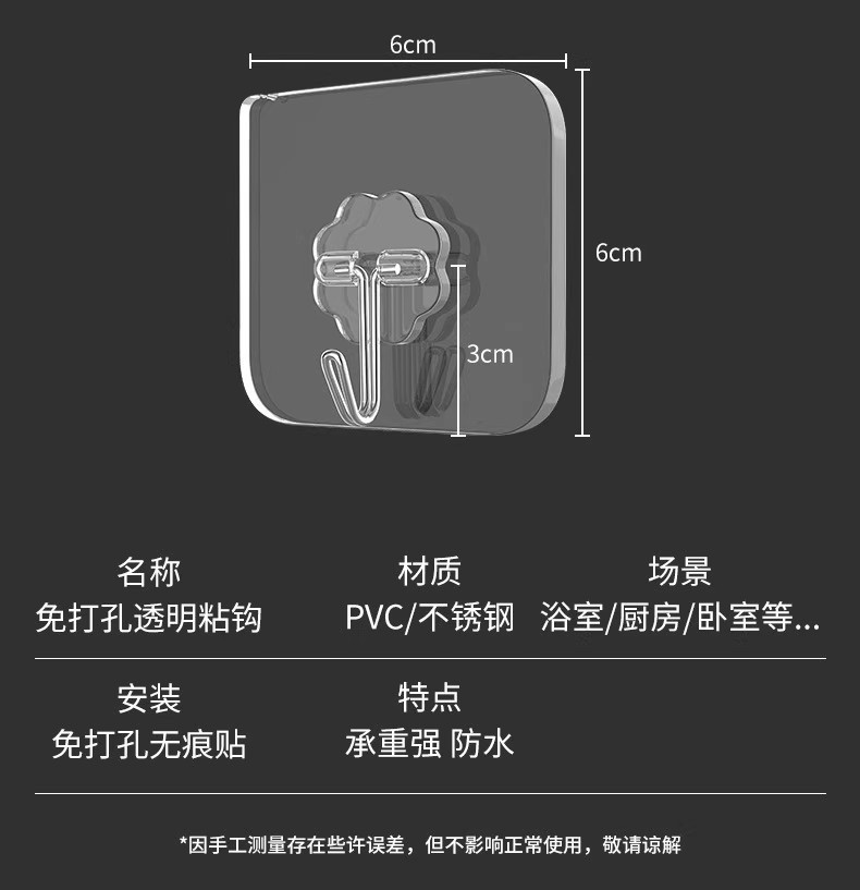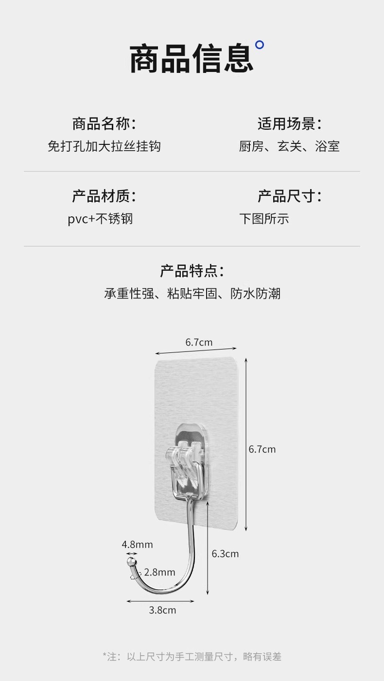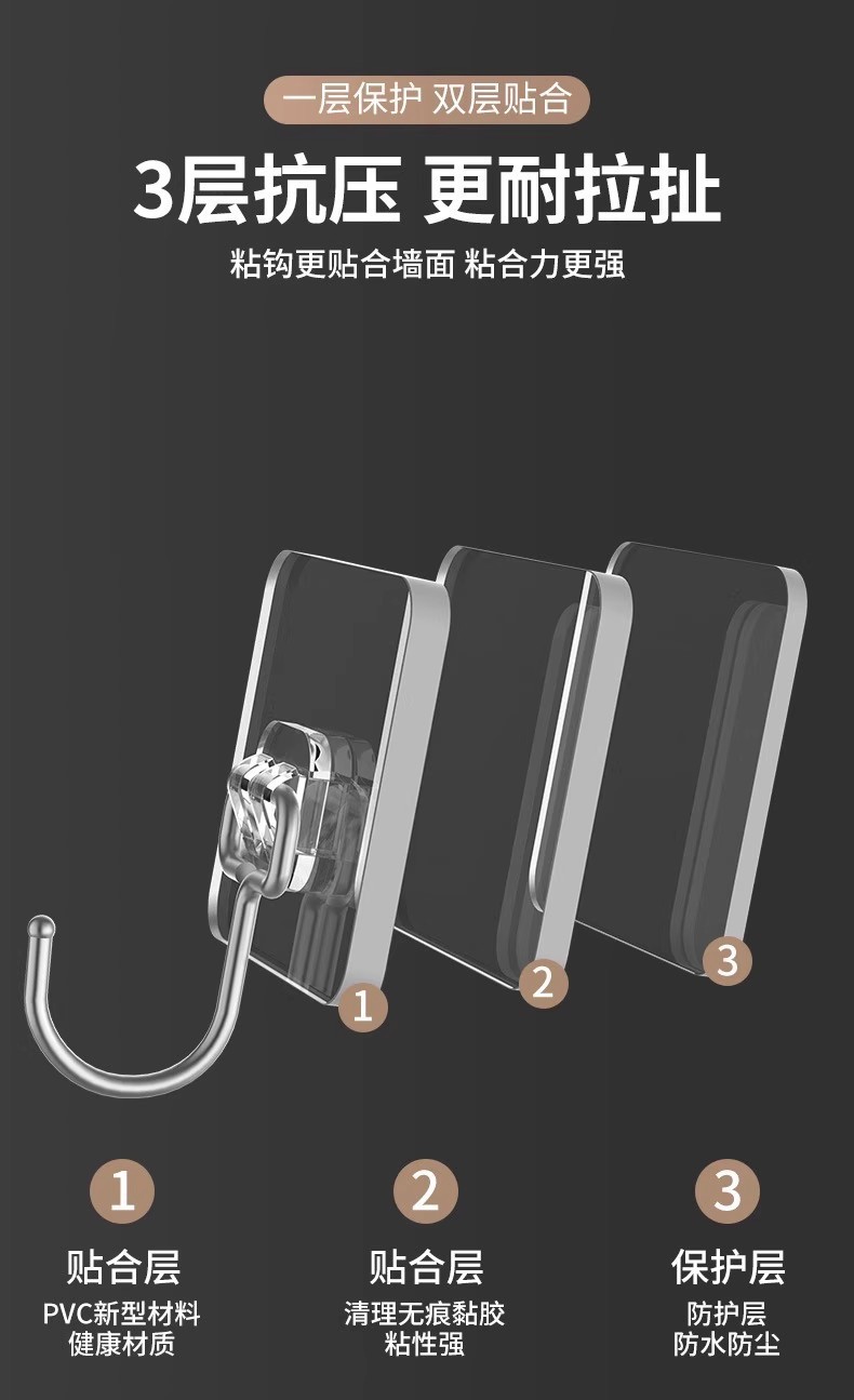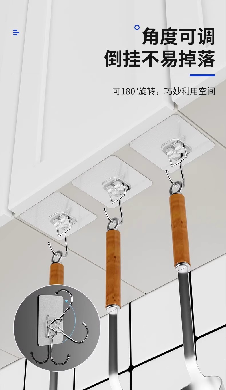 strong adhesive stainless steel solid big hook [10 packs] drop guaranteed compensation
