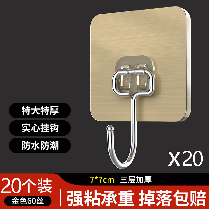 strong adhesive gold stainless steel solid big hook [20 pack] drop guaranteed compensation