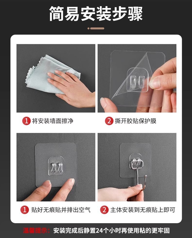 strong adhesive backing, solid stainless steel big hook [pack of 50] — guaranteed compensation for items that fall off.