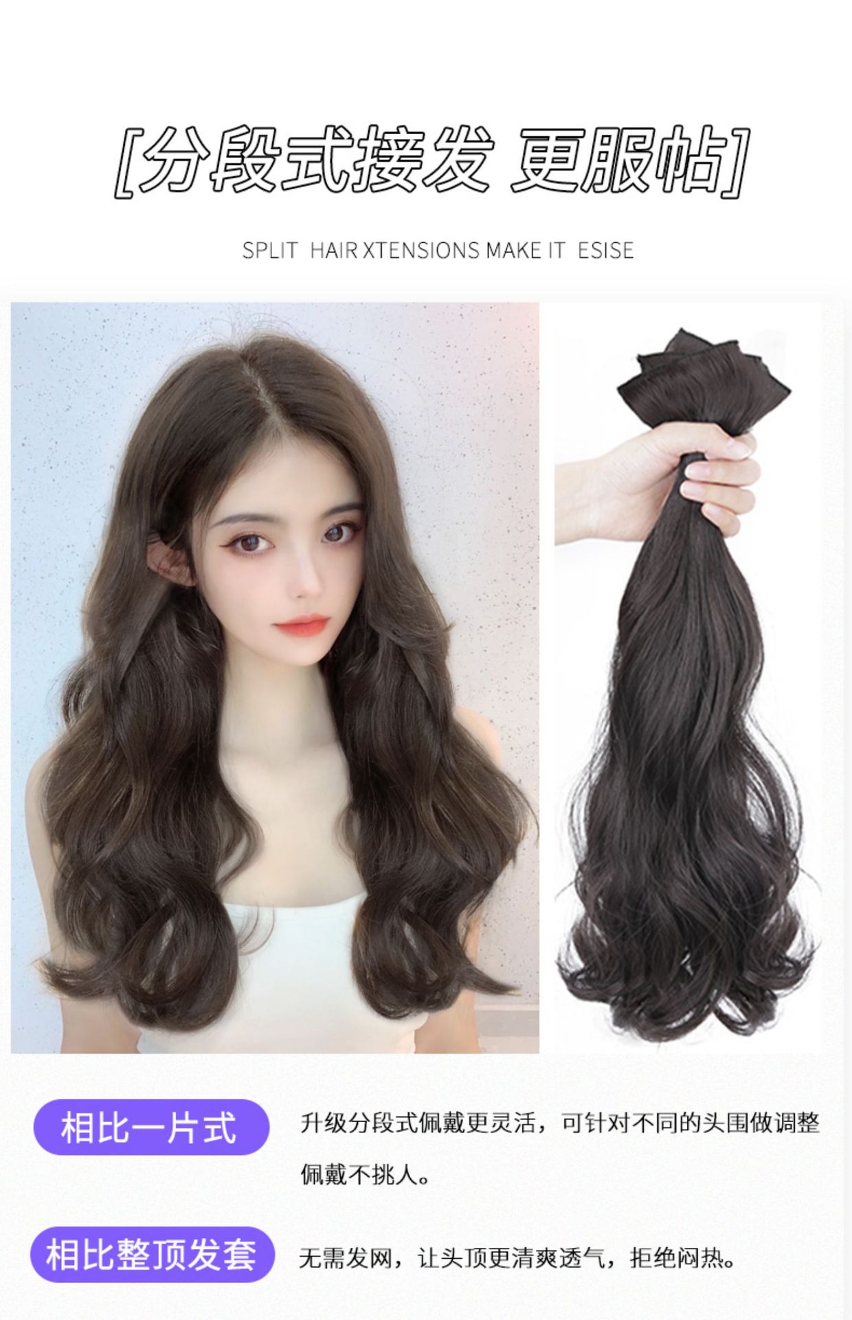upgrade mixed hairline [natural black 60cm]-3 pieces