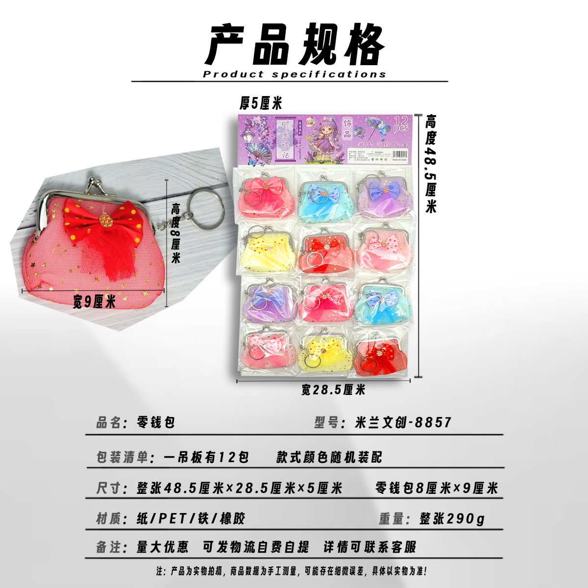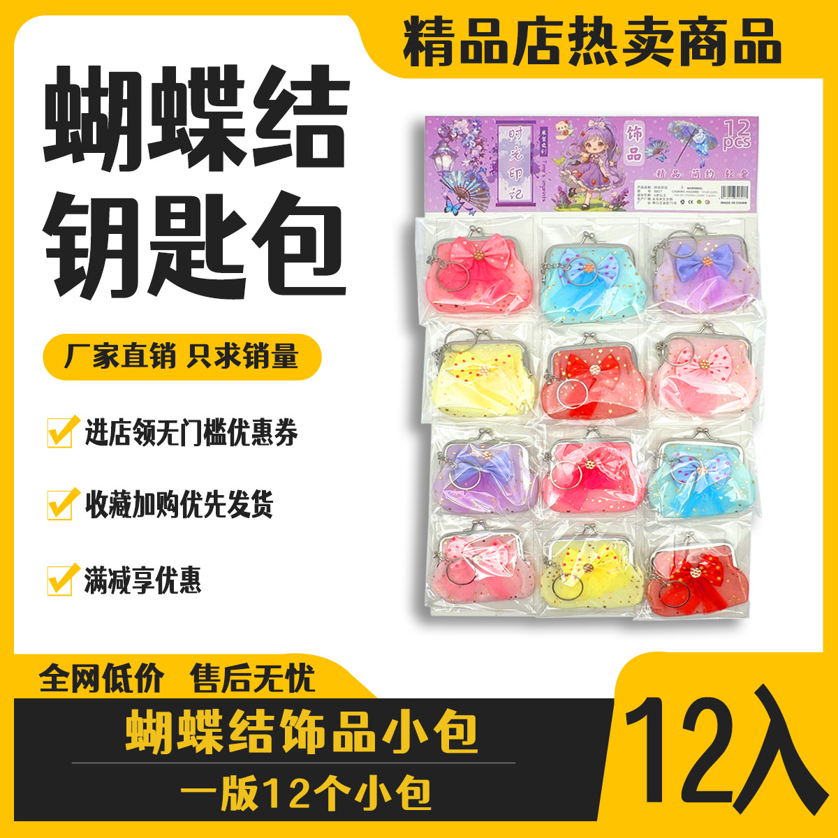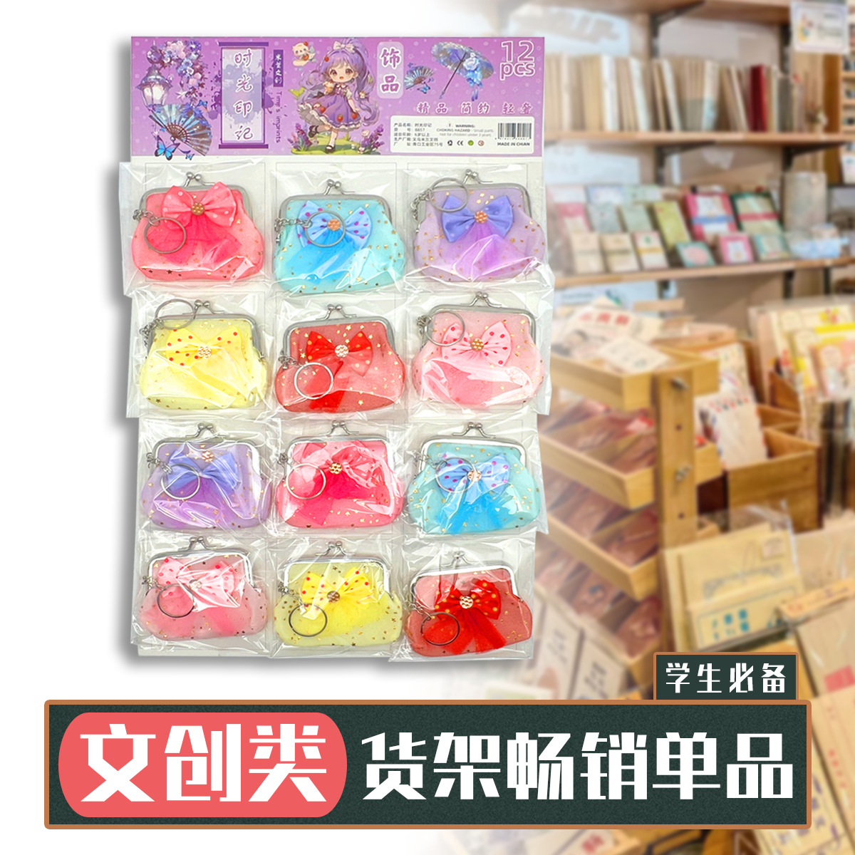 12 bowknot lace small wallet little girl coin purse storage bag school peripheral commodity hanging board