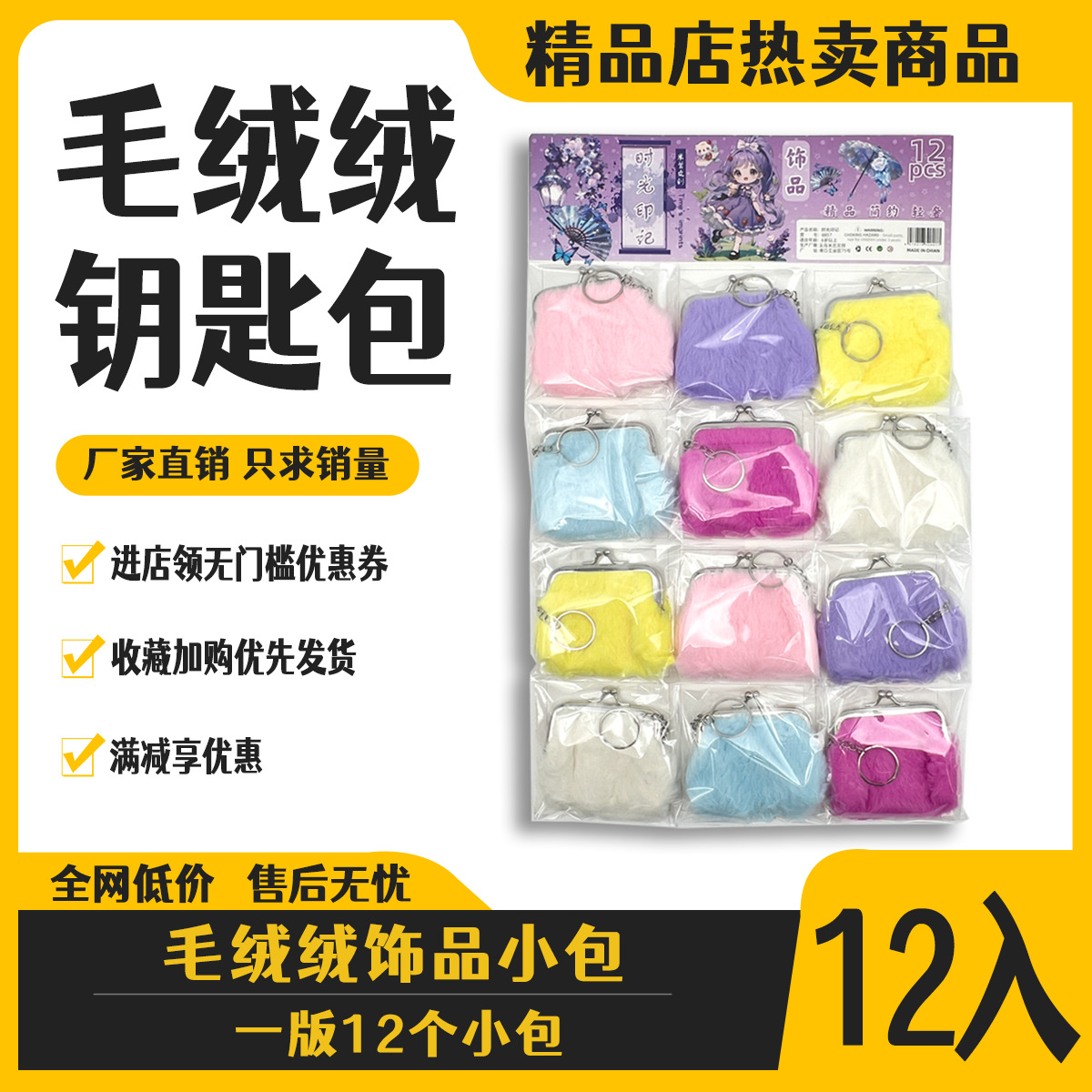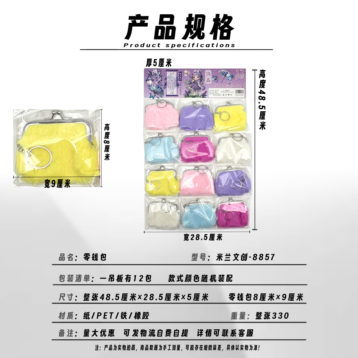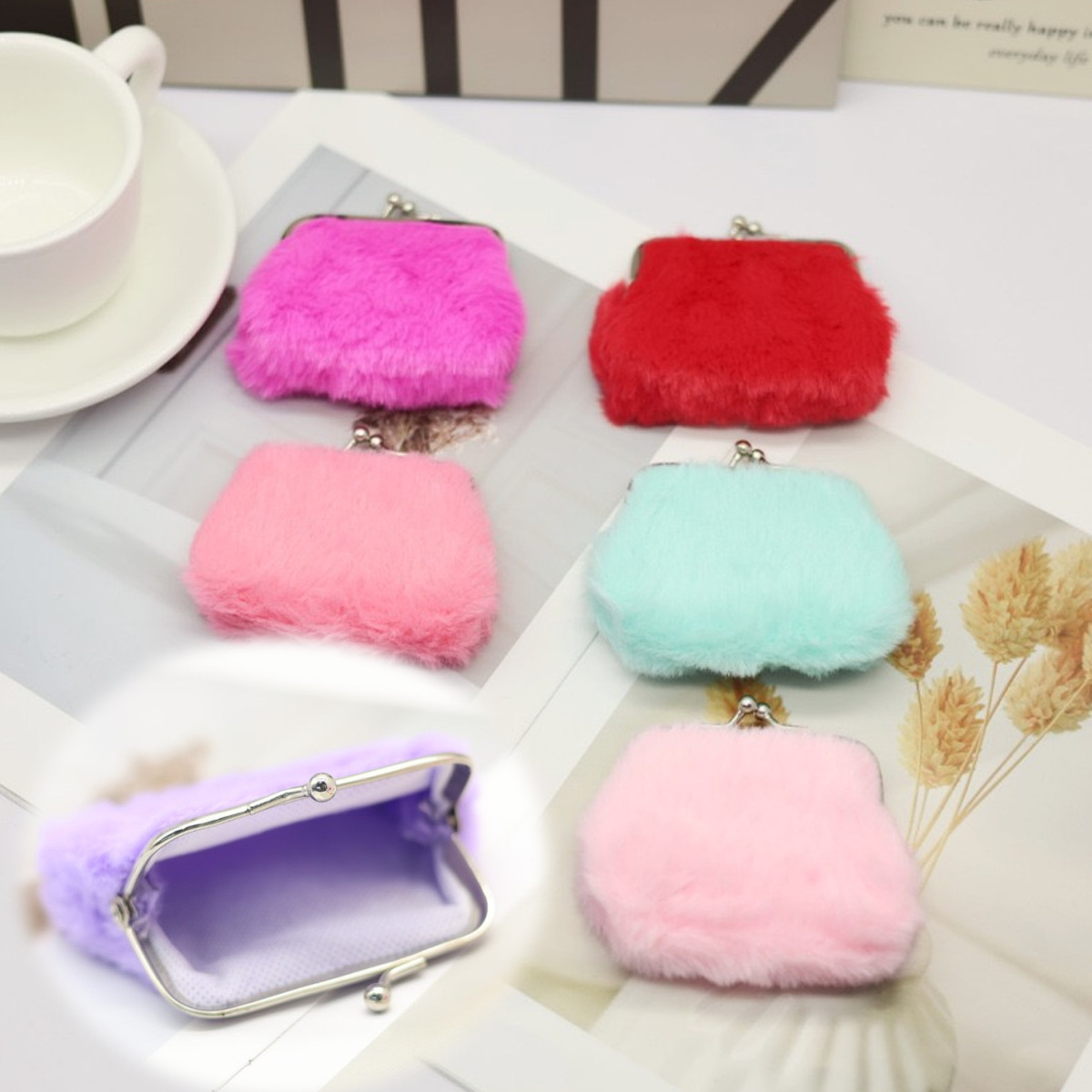 12-entry furry wallet little girl coin purse storage bag school peripheral commodity hanging plate