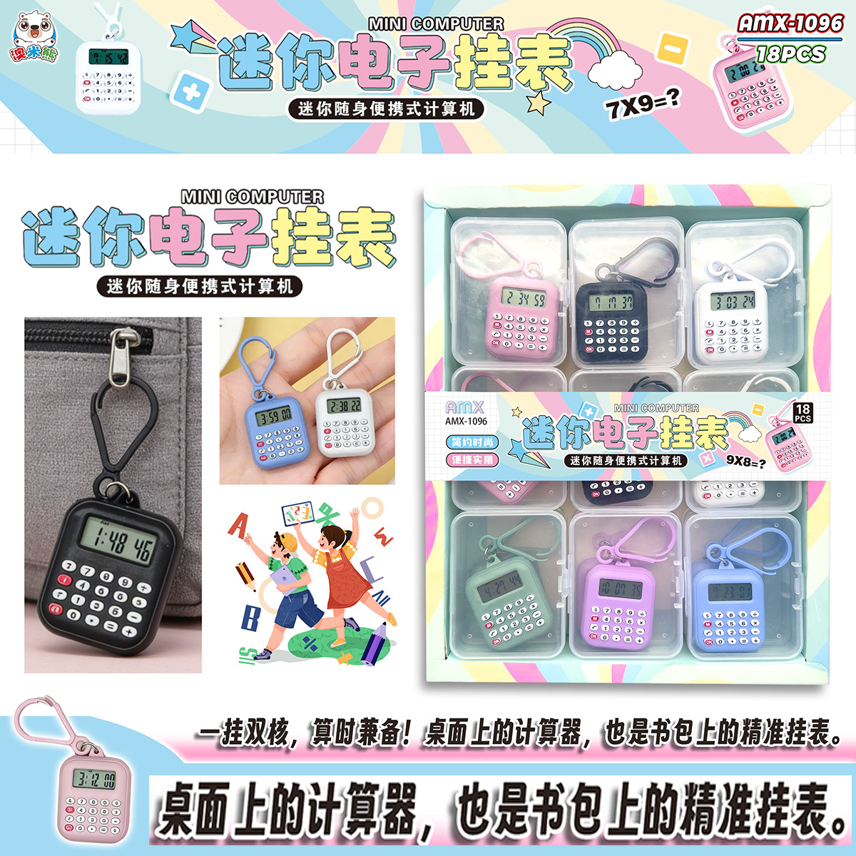 18-in calculator clock pocket watch portable artistic pendant touch display digital small watch led electronic