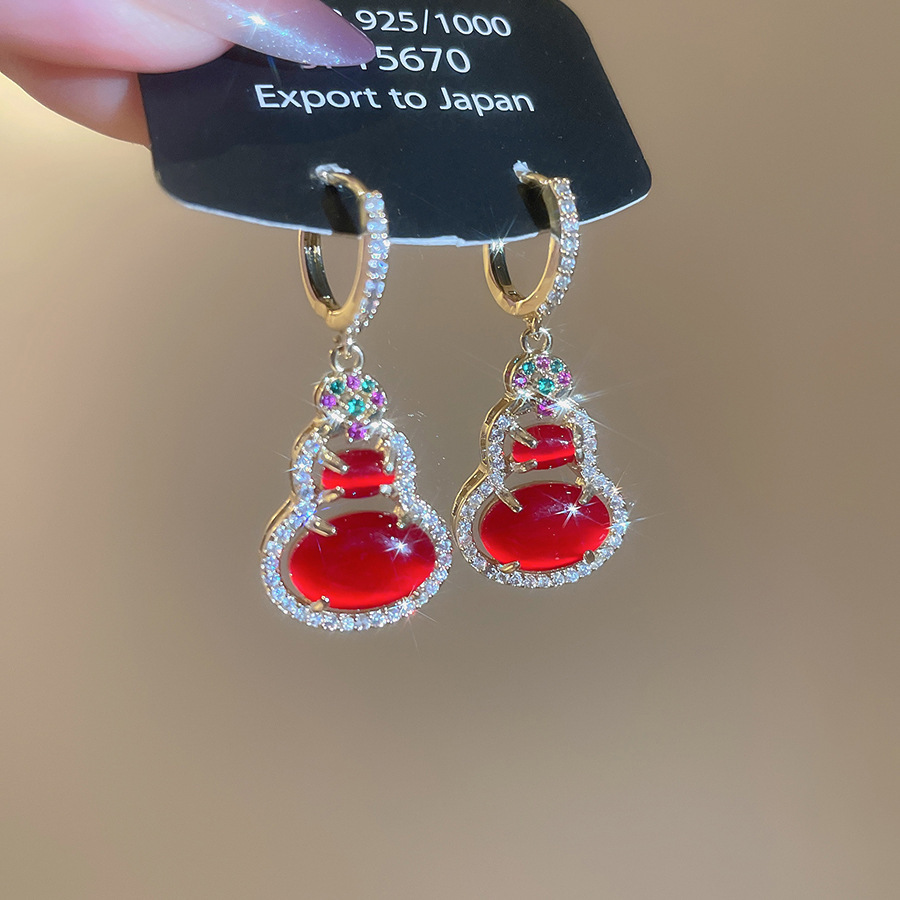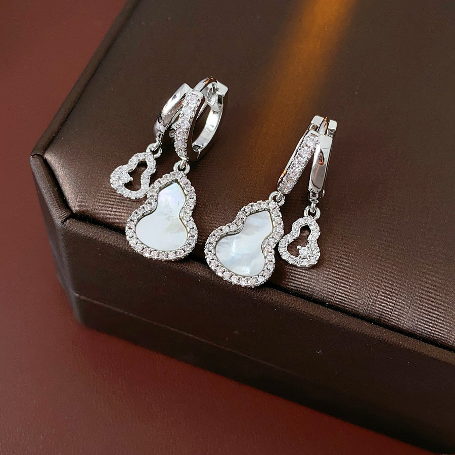 silver needle drop oil zircon gourd ear studs