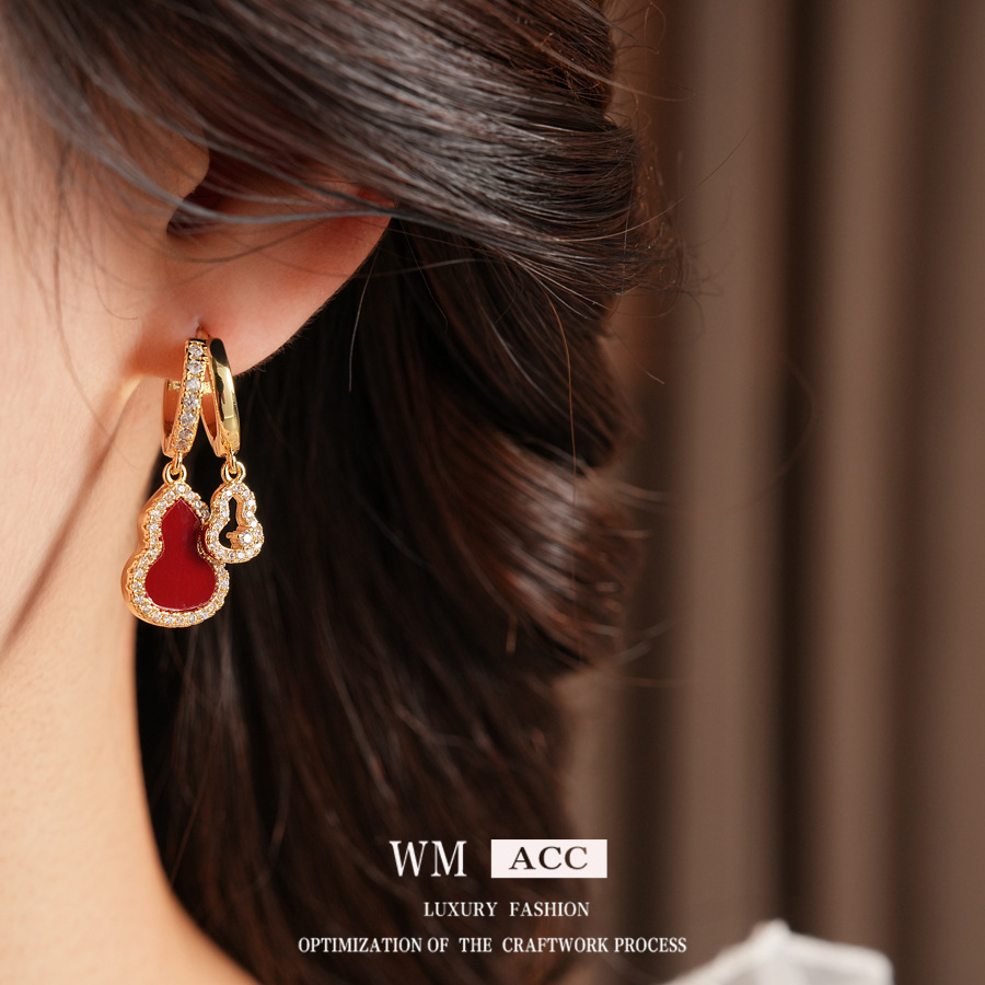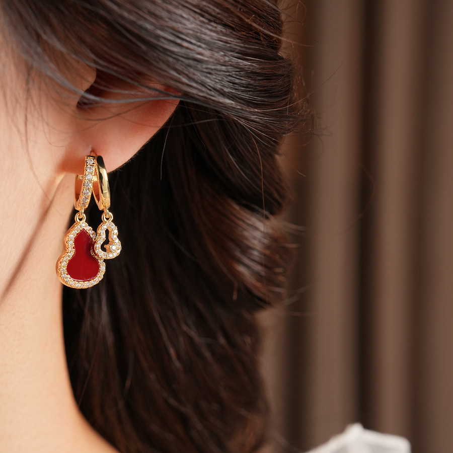 zircon fritillary hollow gourd double layer ear clip