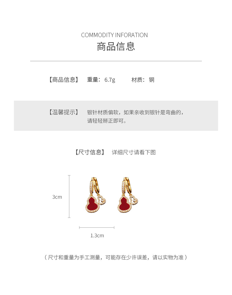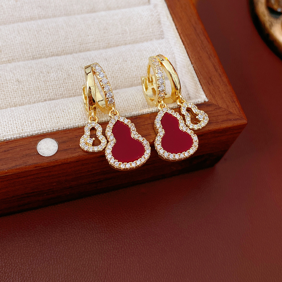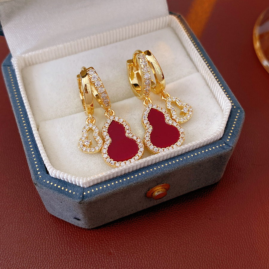 18k real gold electroplated zircon acetate plate calabash pendent fashion ear clips
