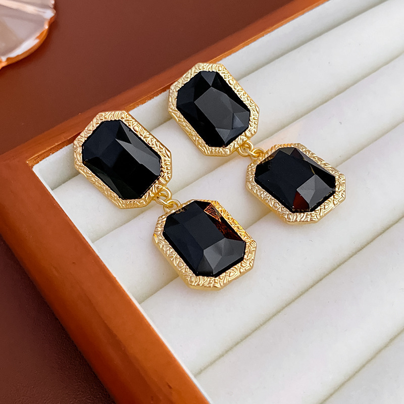 39# ear hook-diamond rectangular diamond oval resin tassel